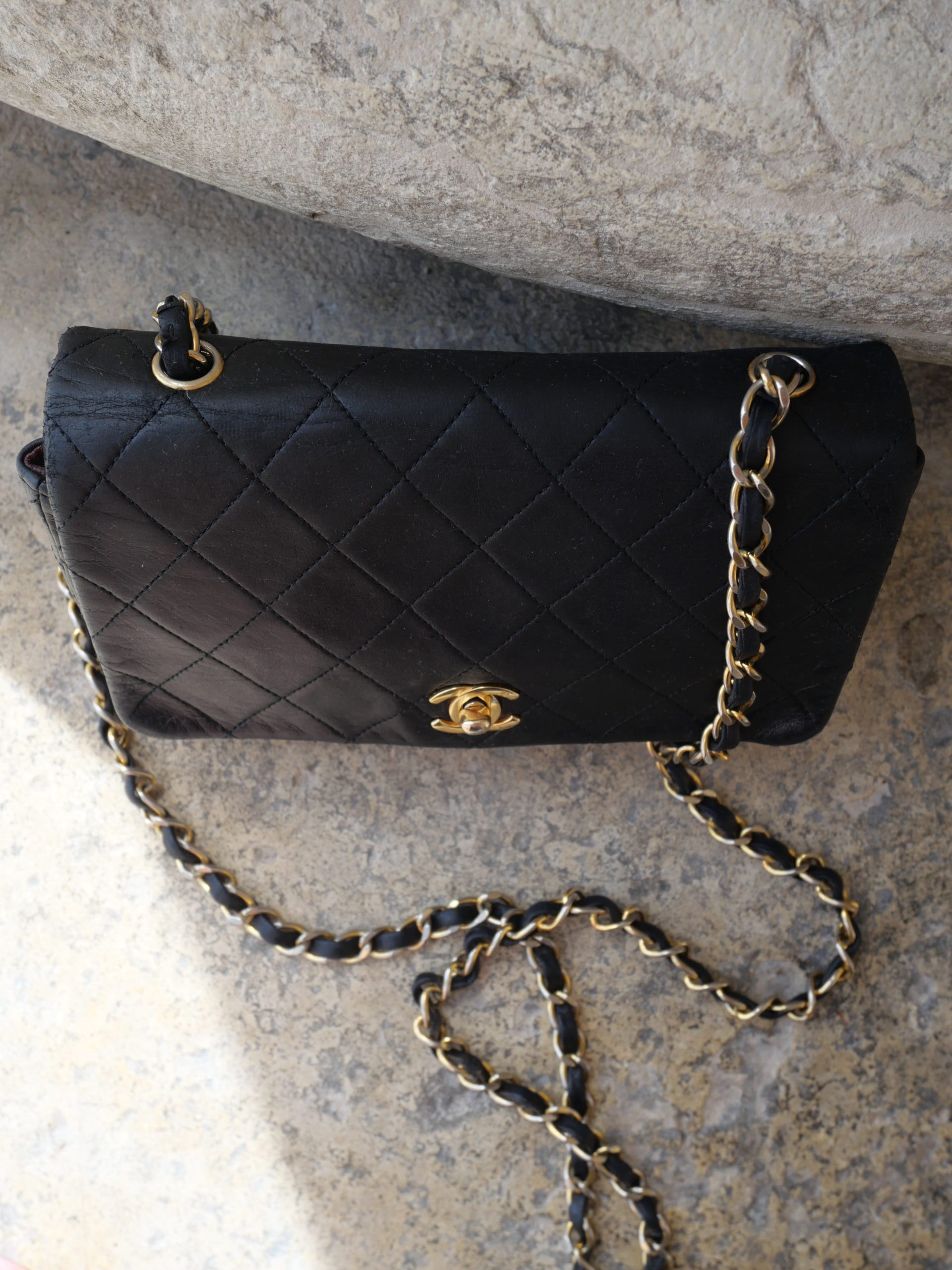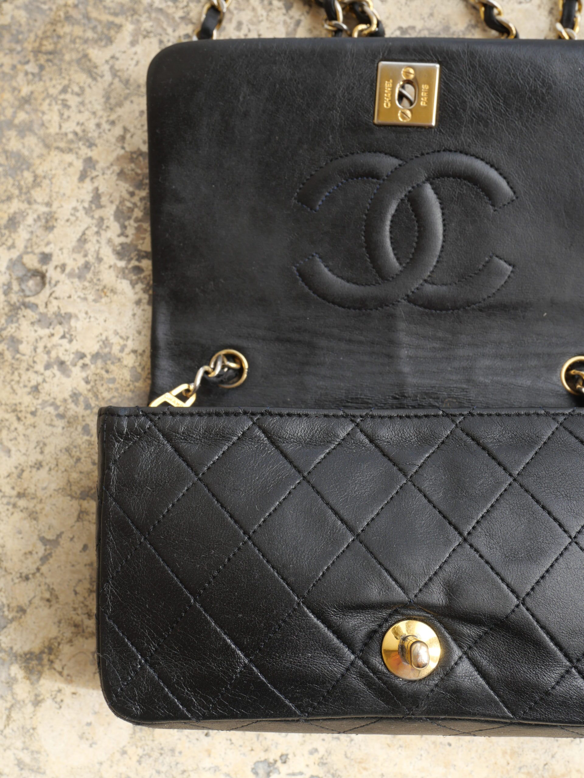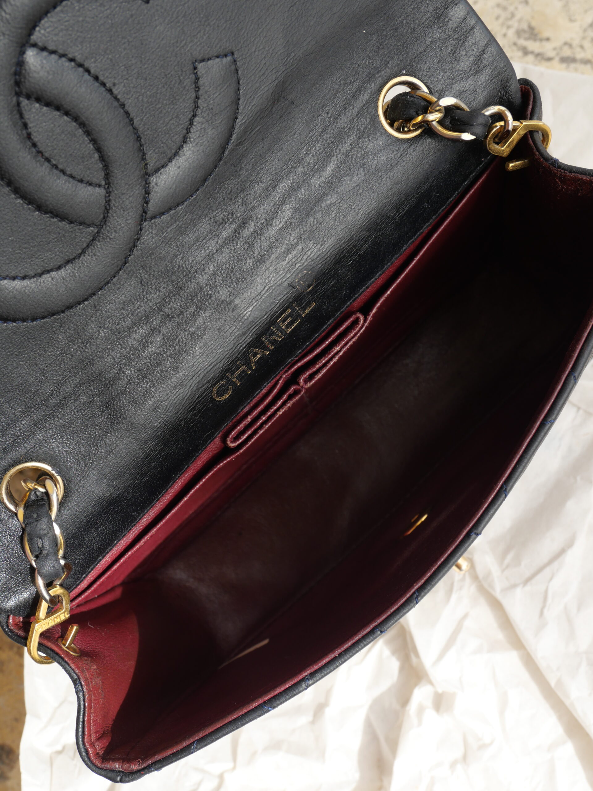 Elegant, klassisch und vielseitig – Diese Chanel Tasche lässt Träume wahr werden. Als elegante Abendtasche oder als praktische Tasche für den Alltag, ist diese Vintage Chanel das ideale Accessoires. Sie verfügt über einen langen abnehmbaren Schulterriemen, mit dem ein Tragen als Umhängetasche als auch als Schultertasche traumhaft gemeistert wird. Im Innenraum sind zusätzlich 2 kleine Fächer vorhanden und die strahlende Hardware ist 24-Karat vergoldet. Die Tasche stammt aus den 90er Jahren, wurde überaus pfleglich behandelt und befindet sich daher in tollem Zustand.