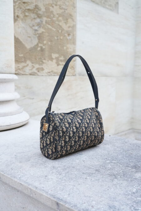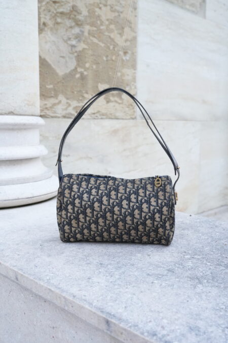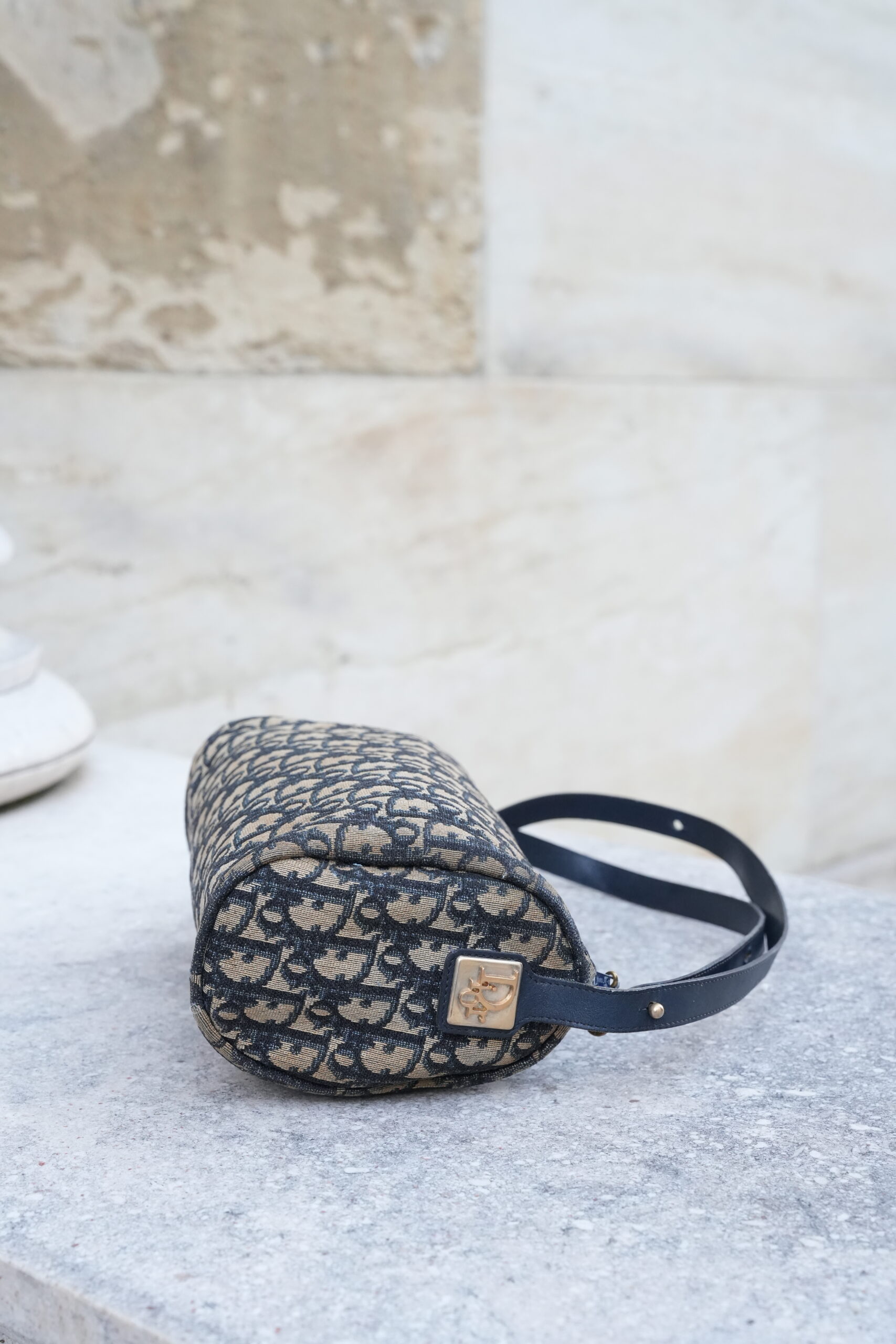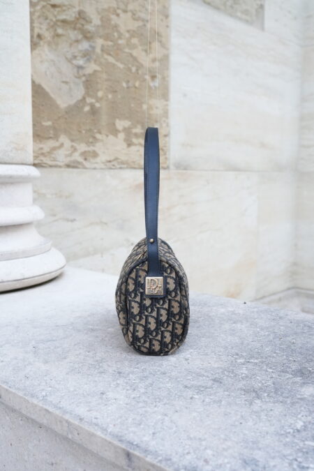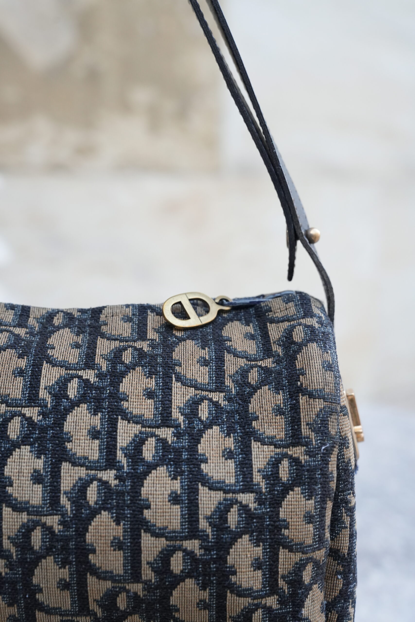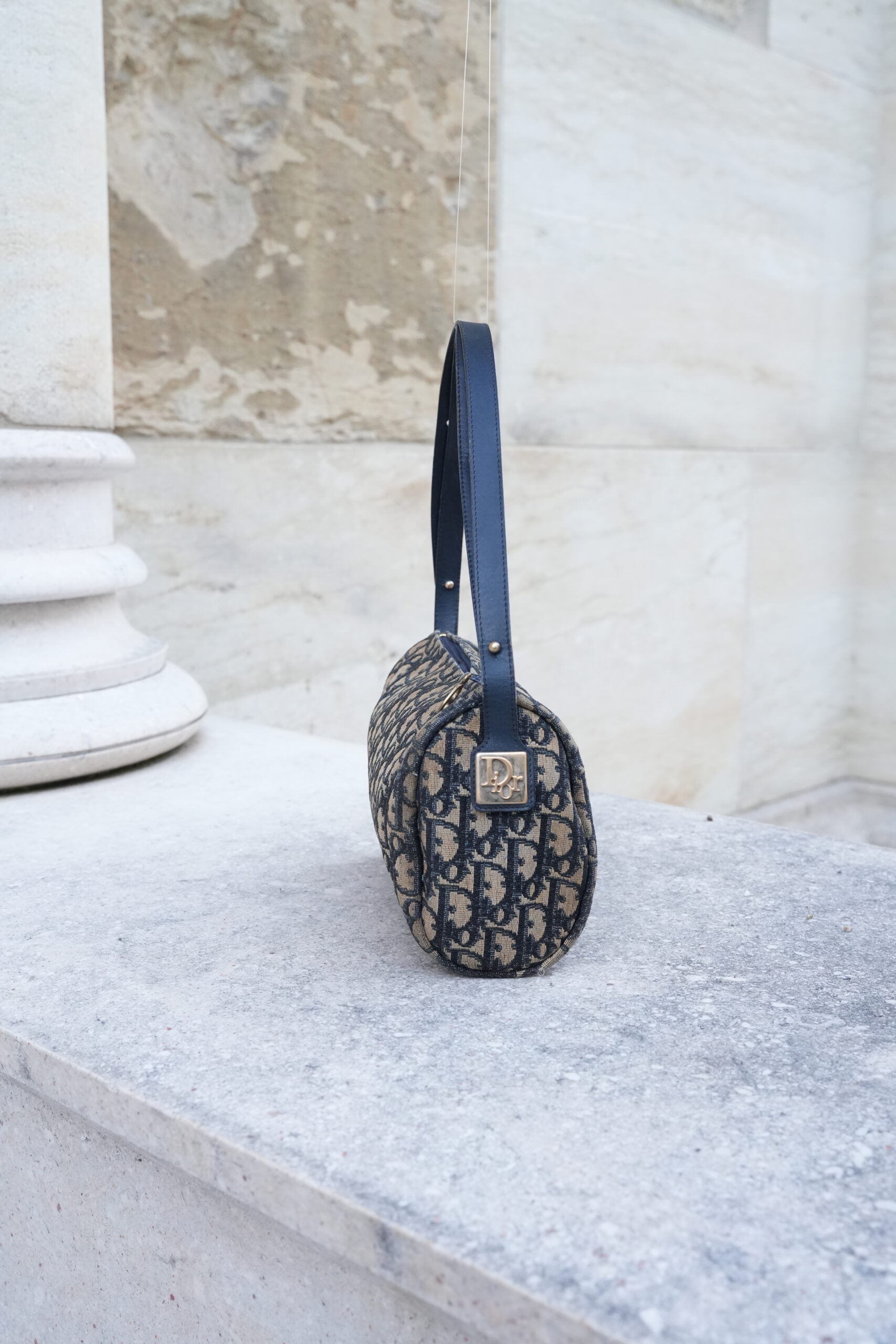 Dieses Modell von Christian Dior ist ein wahr gewordener Vintage-Traum. Das ikonische blaue Monogramm-Canvas, der goldene CD-Reißverschluss und die fein abgestimmten goldenen Details verleihen der Tasche eine unverwechselbare Ausstrahlung.