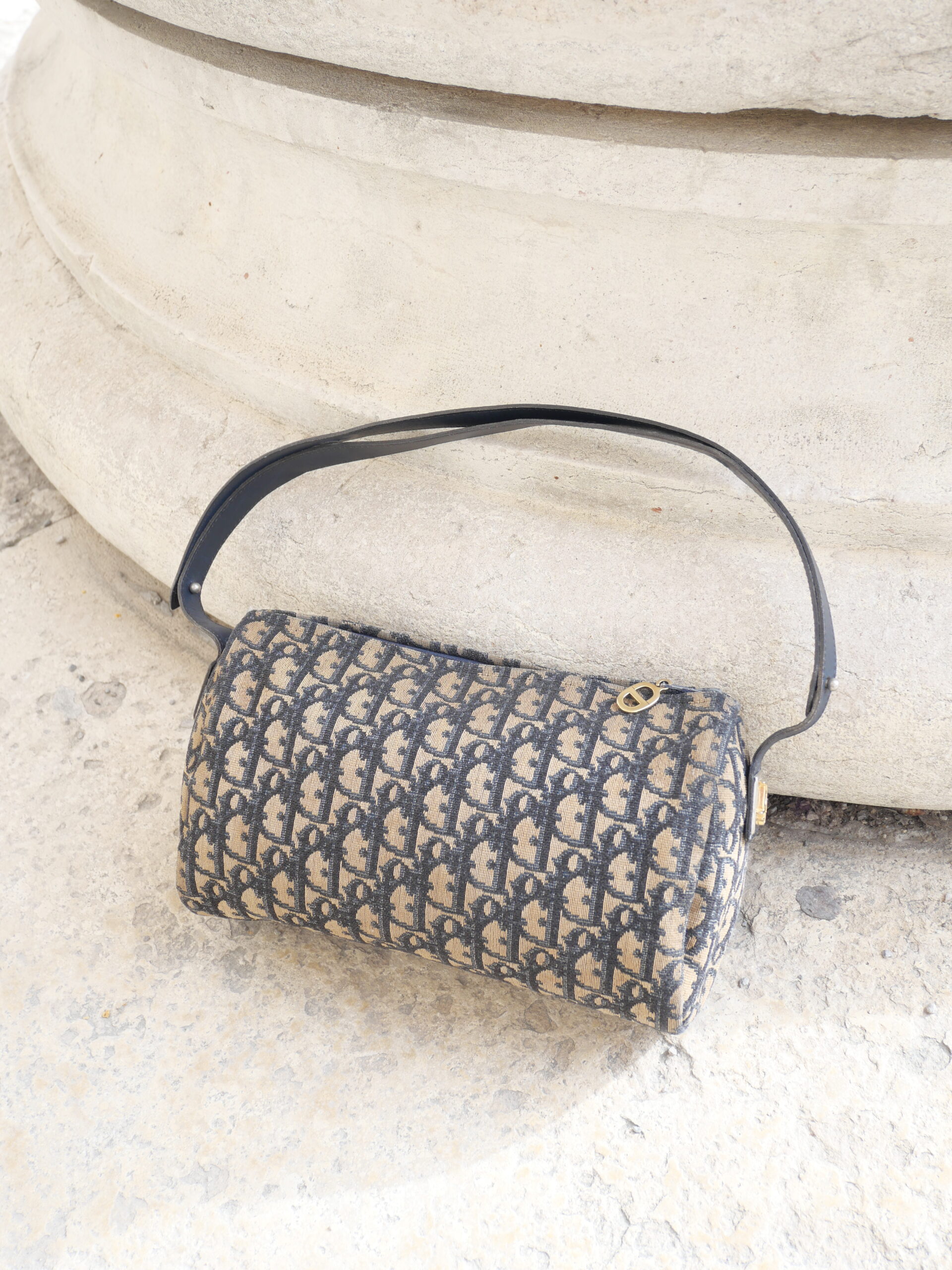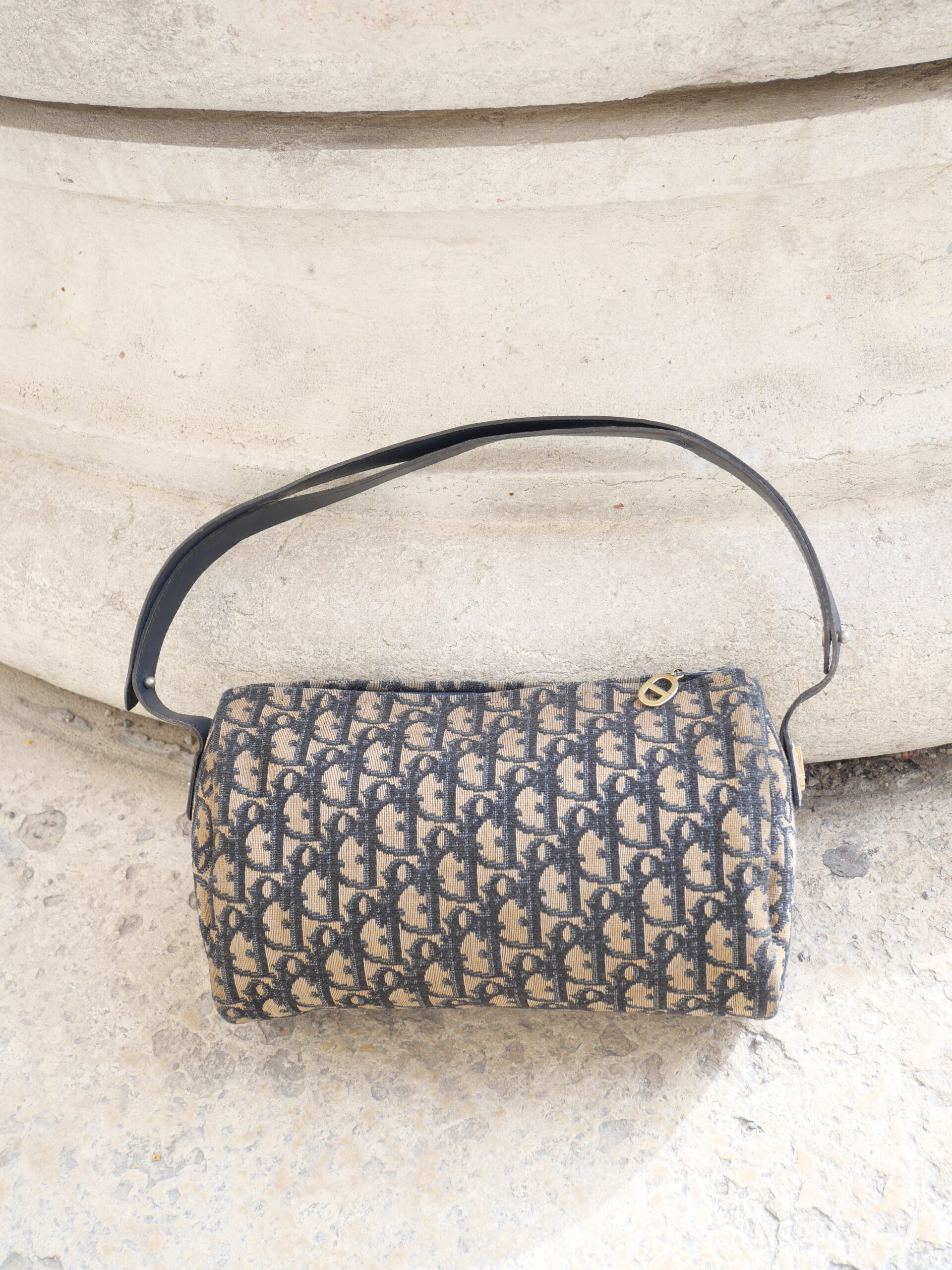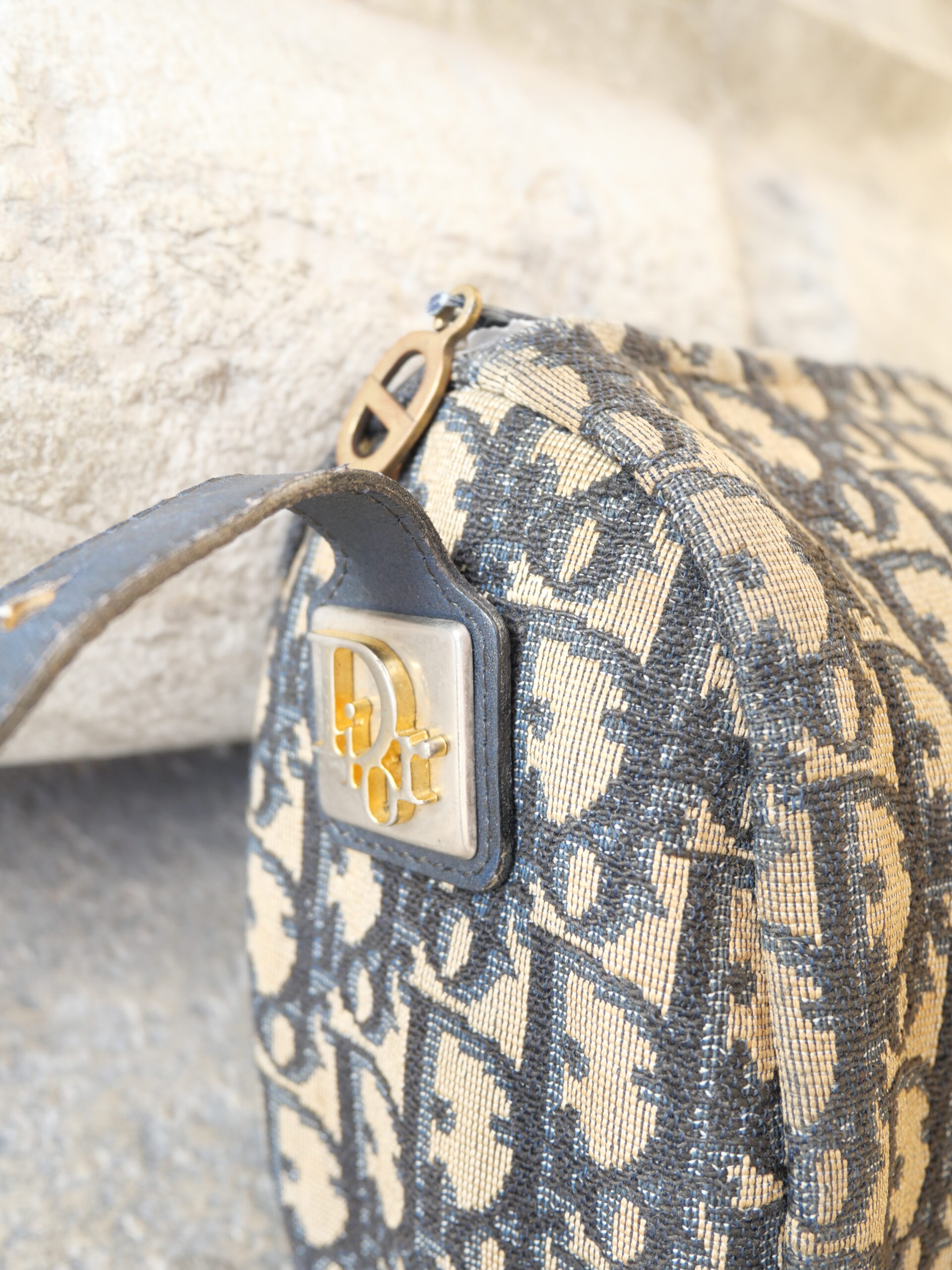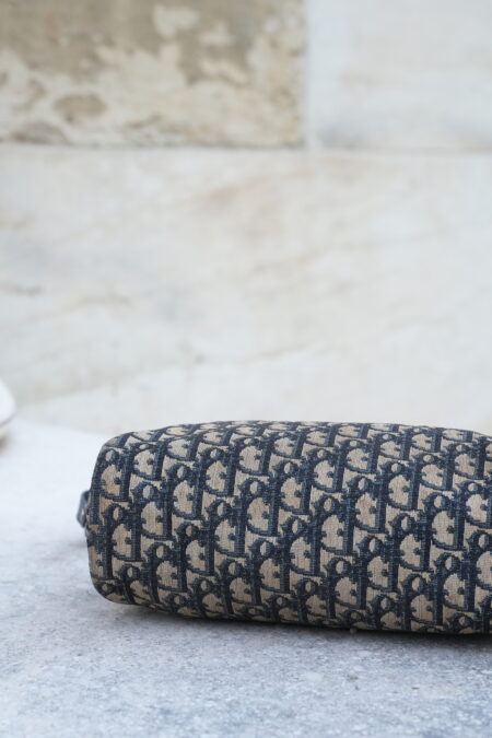 Dieses Modell von Christian Dior ist ein wahr gewordener Vintage-Traum. Das ikonische blaue Monogramm-Canvas, der goldene CD-Reißverschluss und die fein abgestimmten goldenen Details verleihen der Tasche eine unverwechselbare Ausstrahlung.