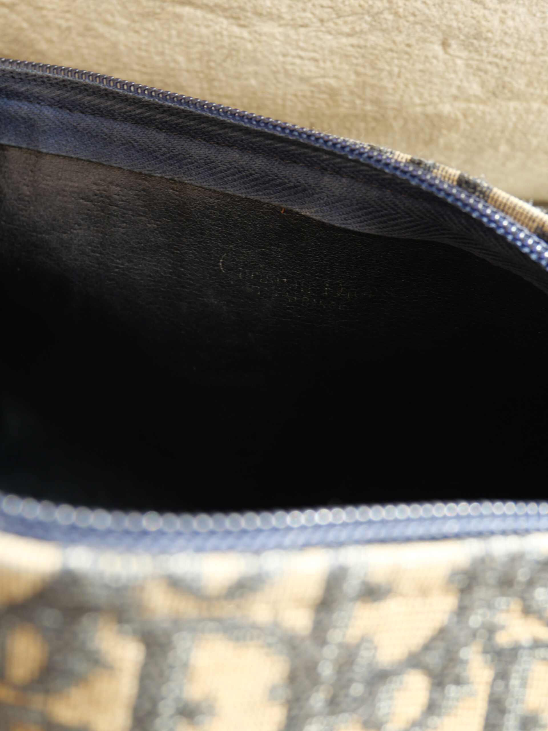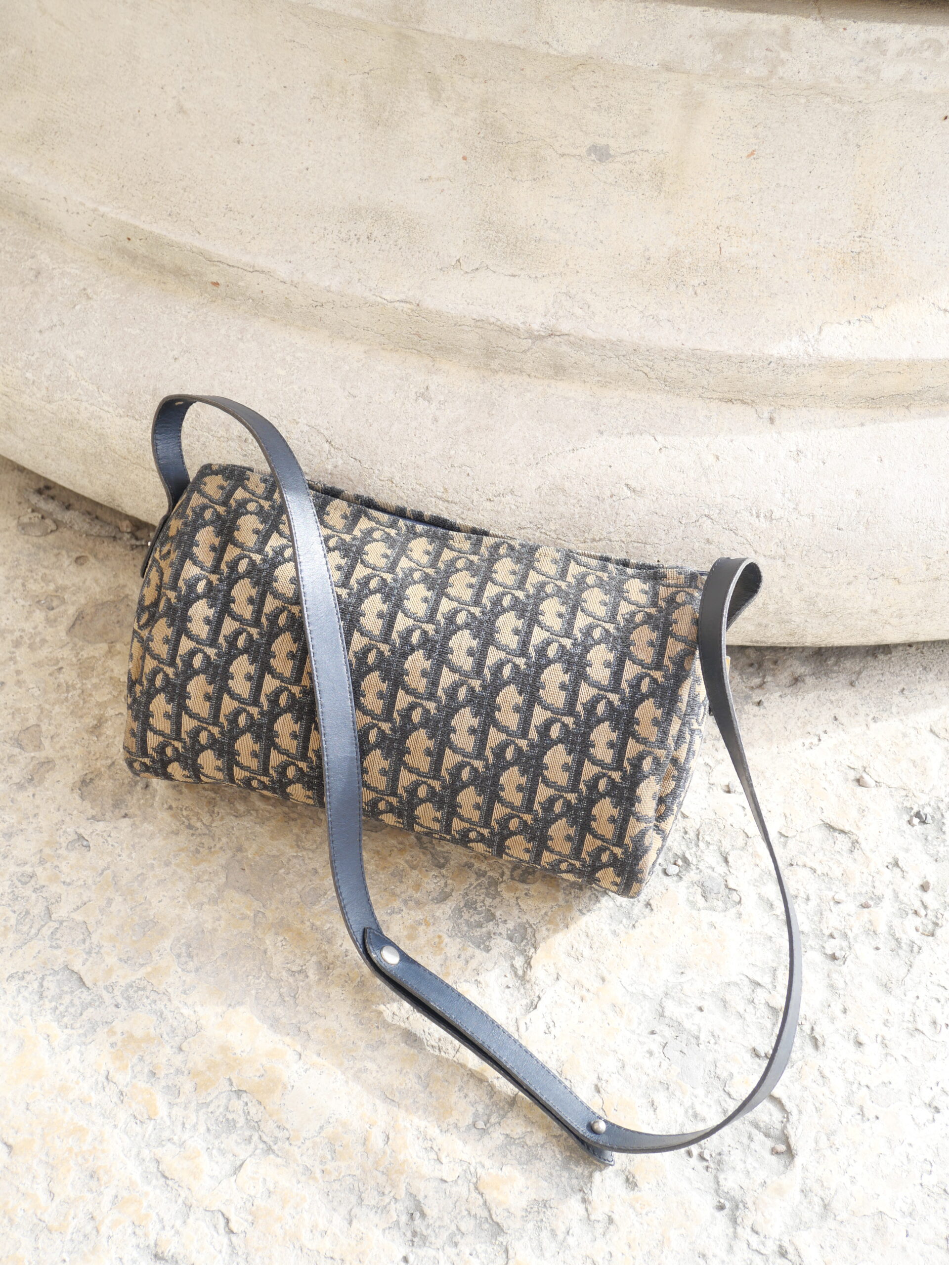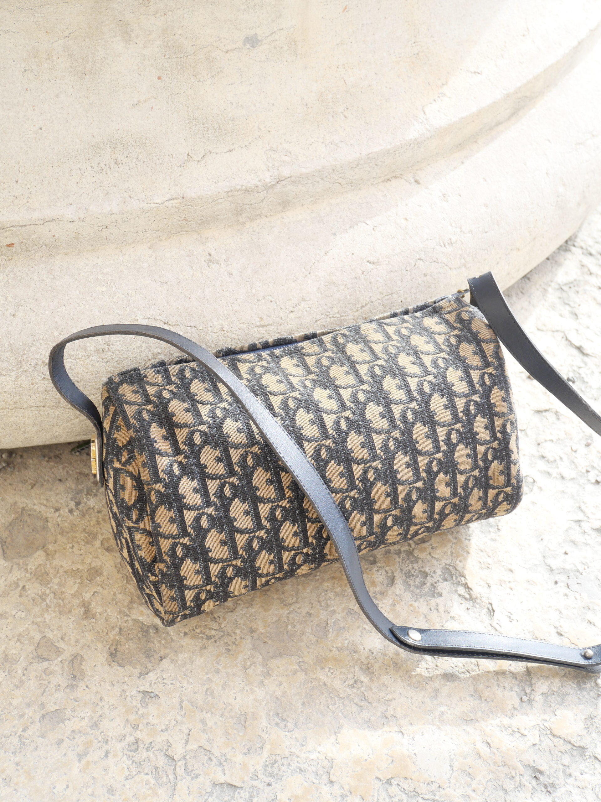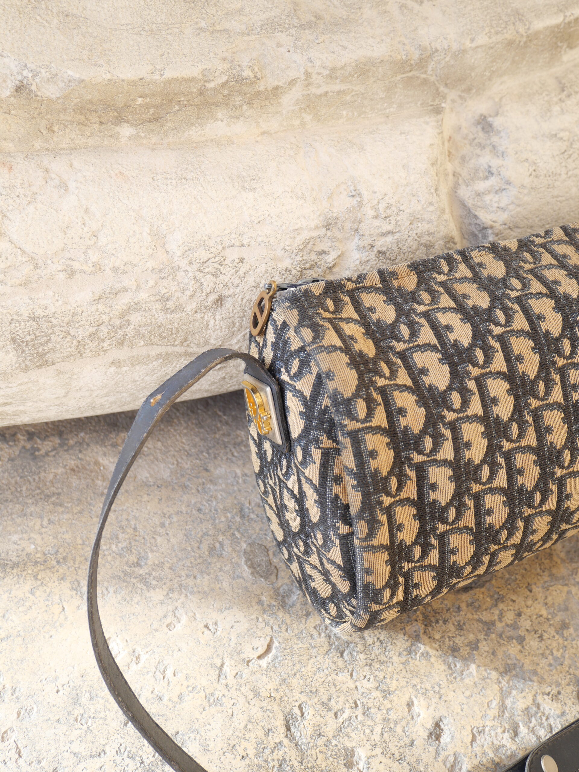 Dieses Modell von Christian Dior ist ein wahr gewordener Vintage-Traum. Das ikonische blaue Monogramm-Canvas, der goldene CD-Reißverschluss und die fein abgestimmten goldenen Details verleihen der Tasche eine unverwechselbare Ausstrahlung.