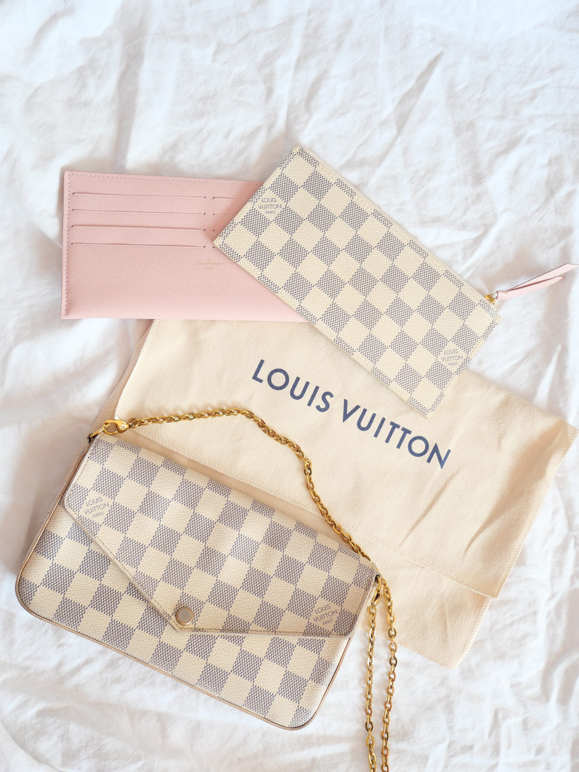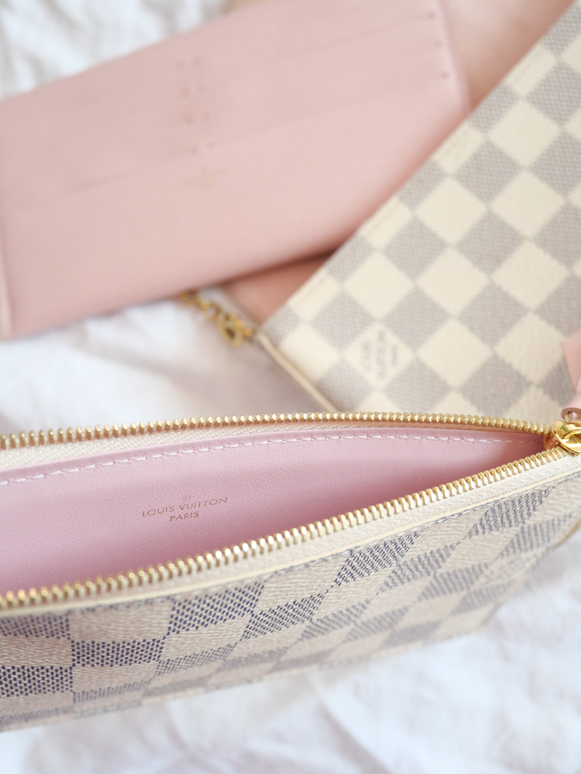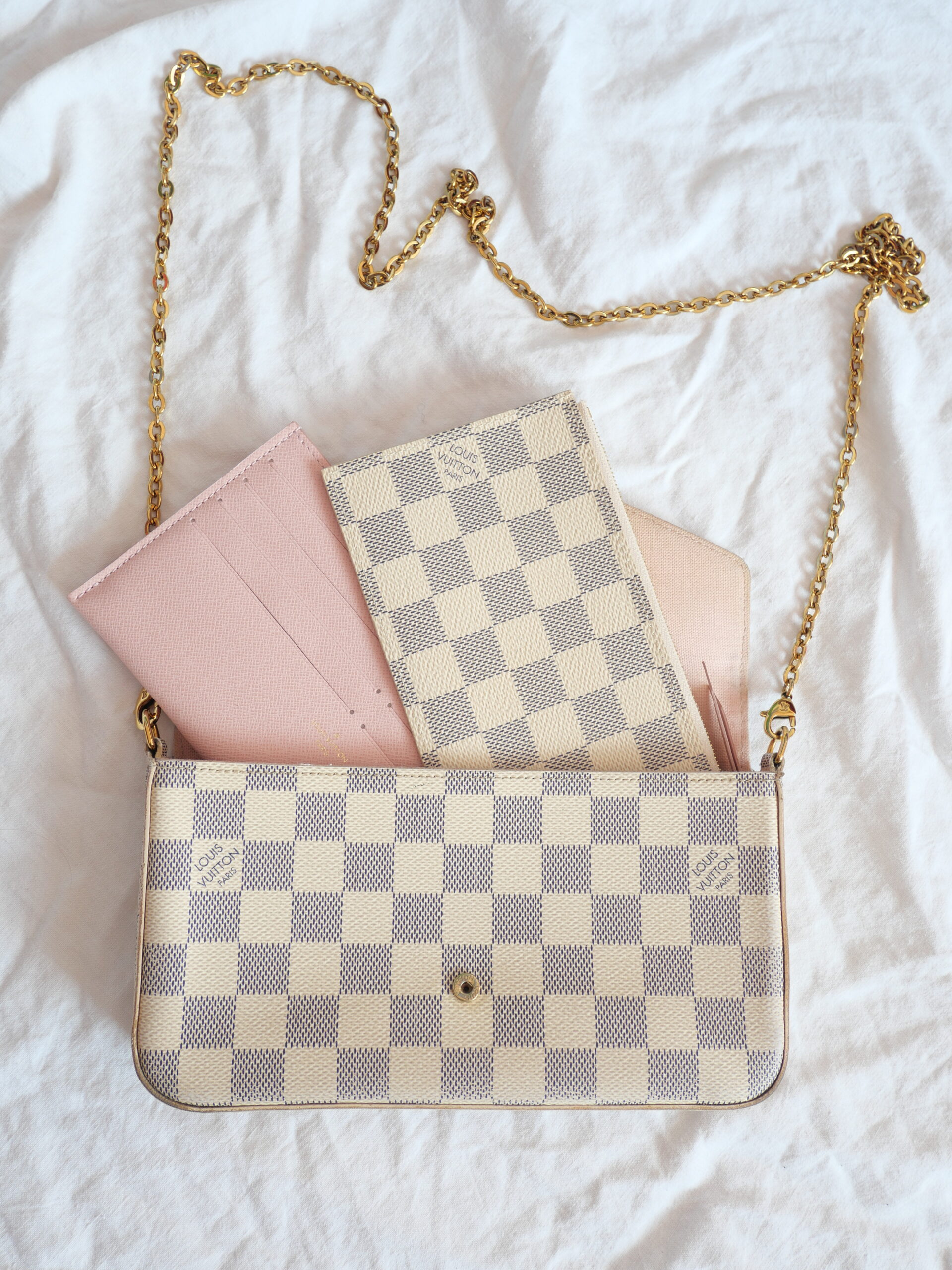 Die Félicie Pochette von Louis Vuitton zählt zu den begehrtesten Taschen des Designers und ist ein grandioses Einstiegsmodell – und das nicht ohne Grund. Diese Tasche ist nicht nur stylisch, sondern auch äußerst vielseitig. Ihr Innenraum ist mit einem kleinen Fach ausgestattet und mit einem zarten rosa Stoff bezogen. Zusätzlich enthält sie zwei herausnehmbare Clutches, die eine ideale Organisation in der Tasche ermöglichen.
