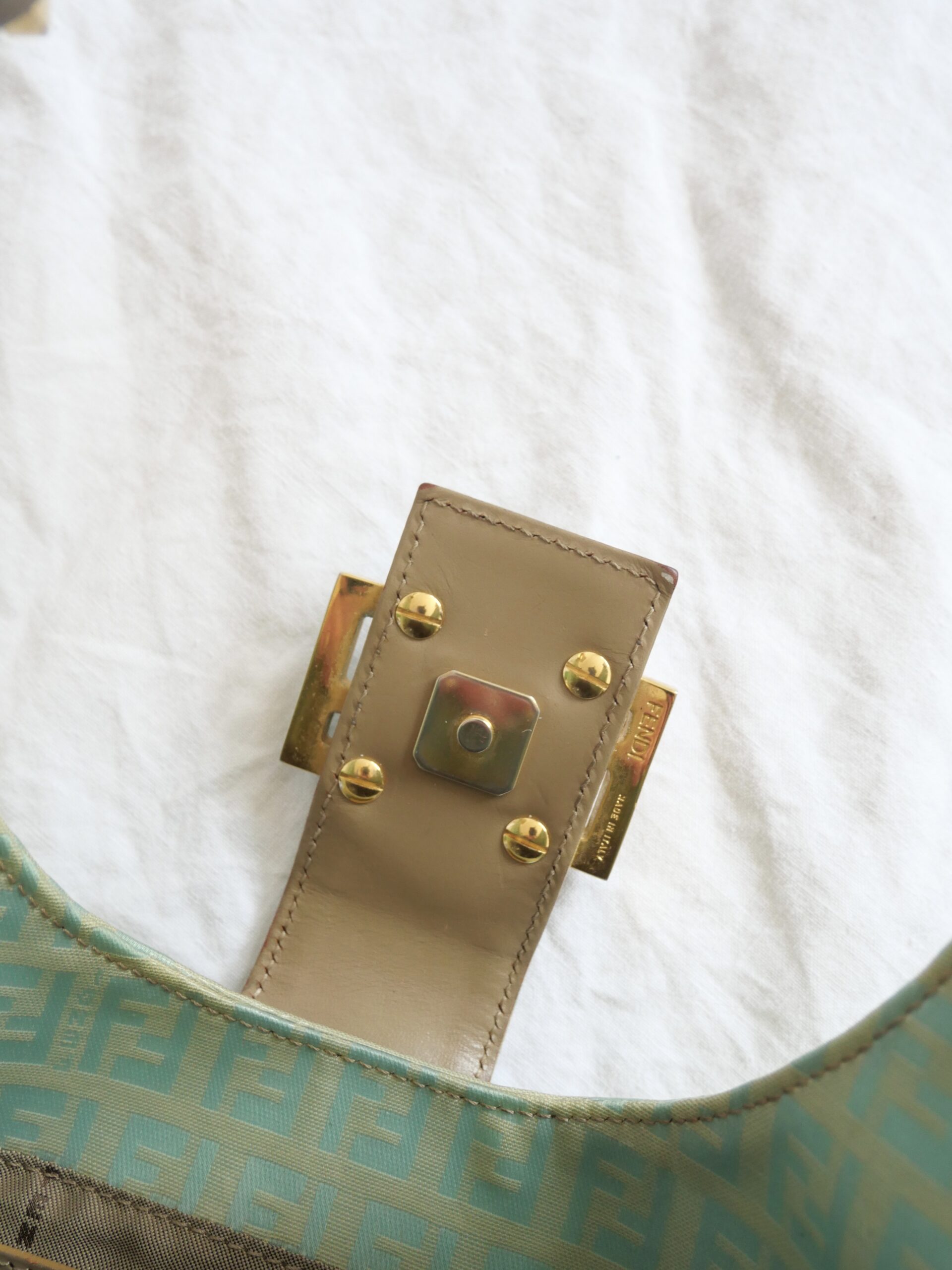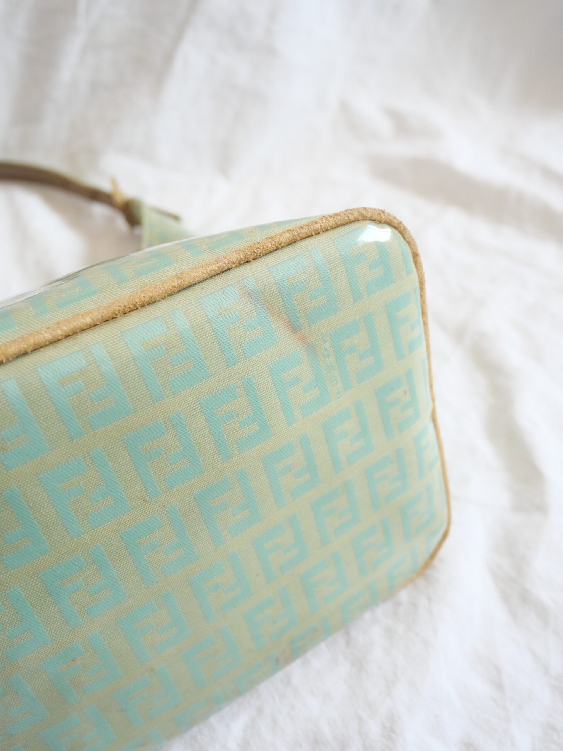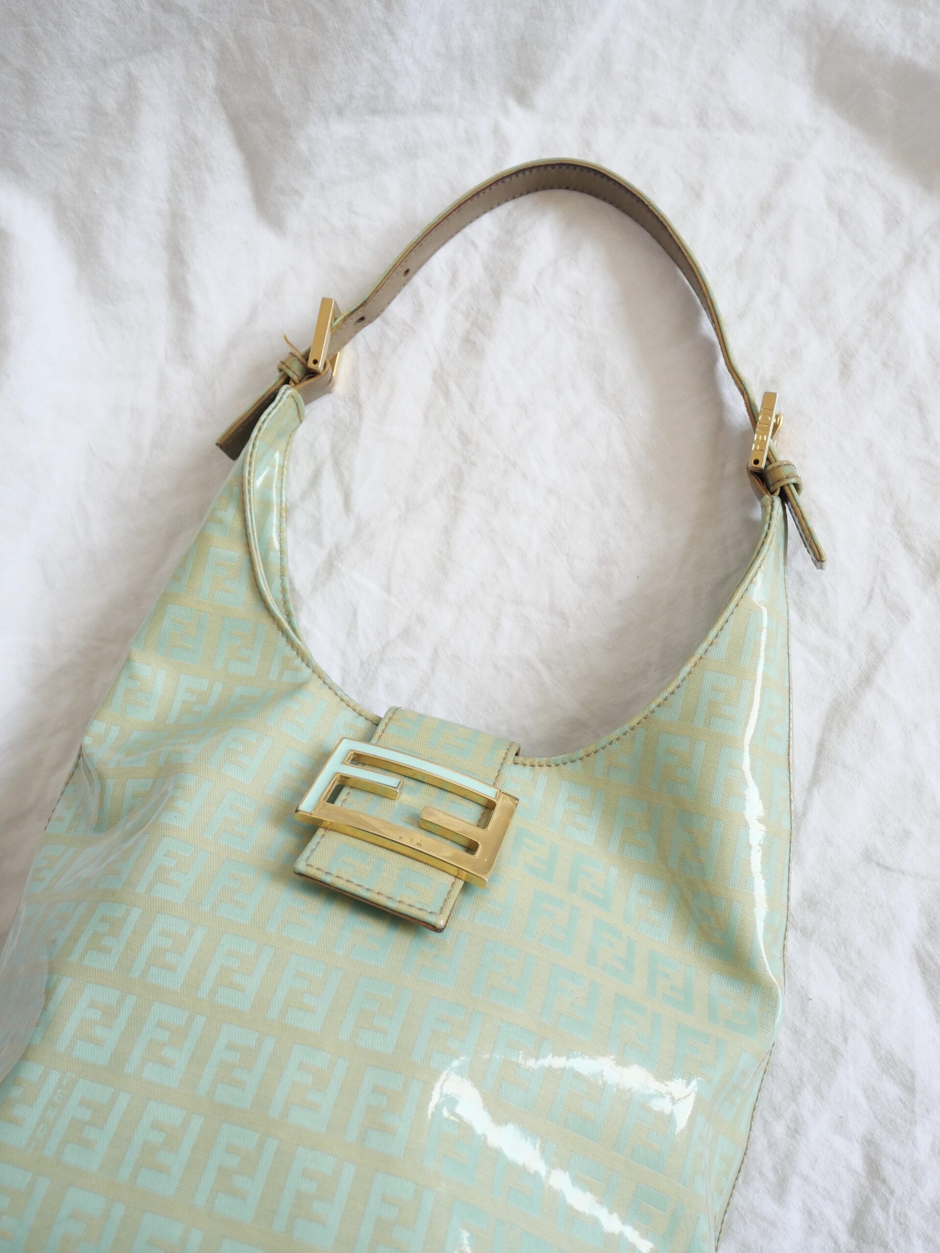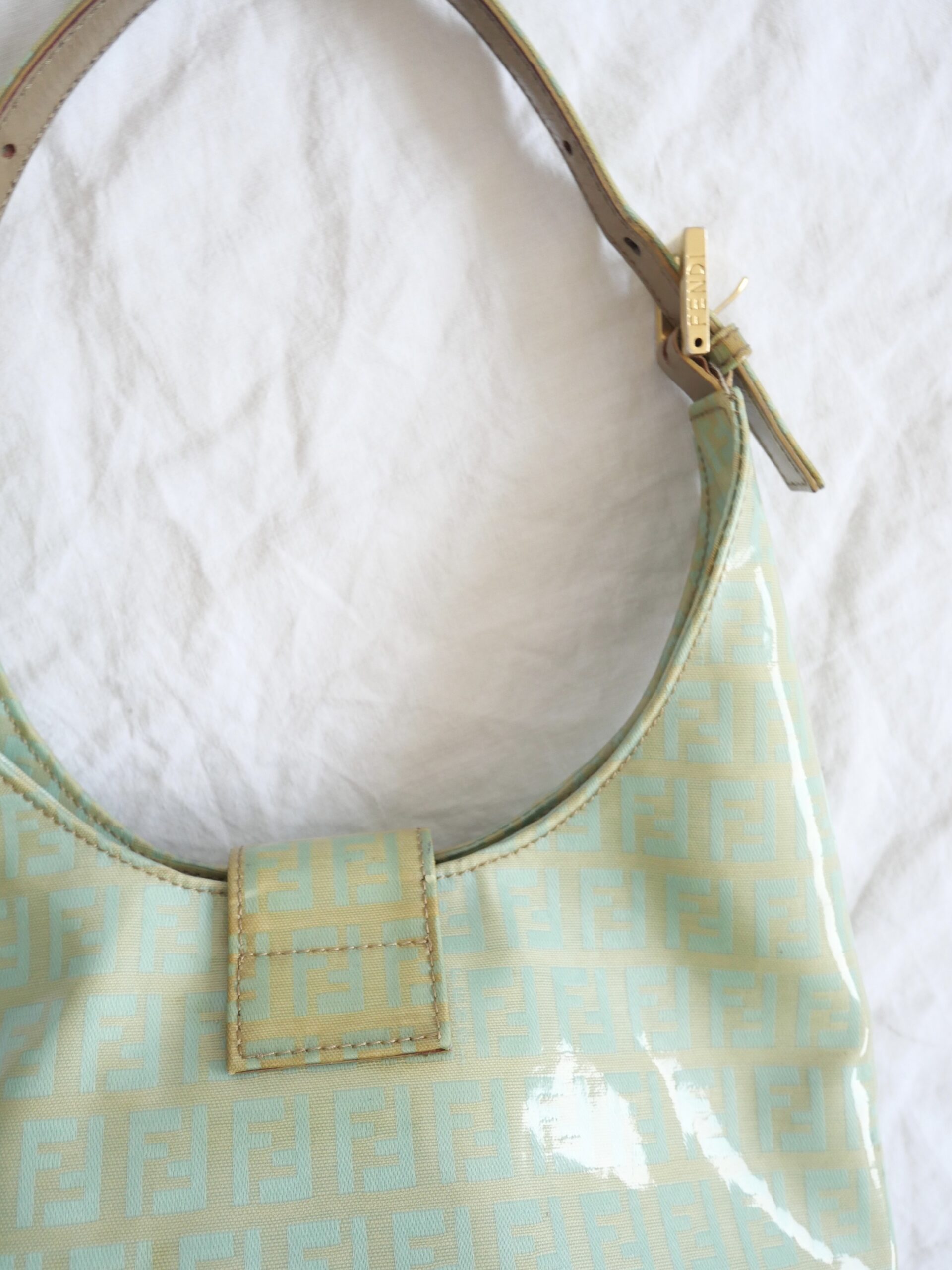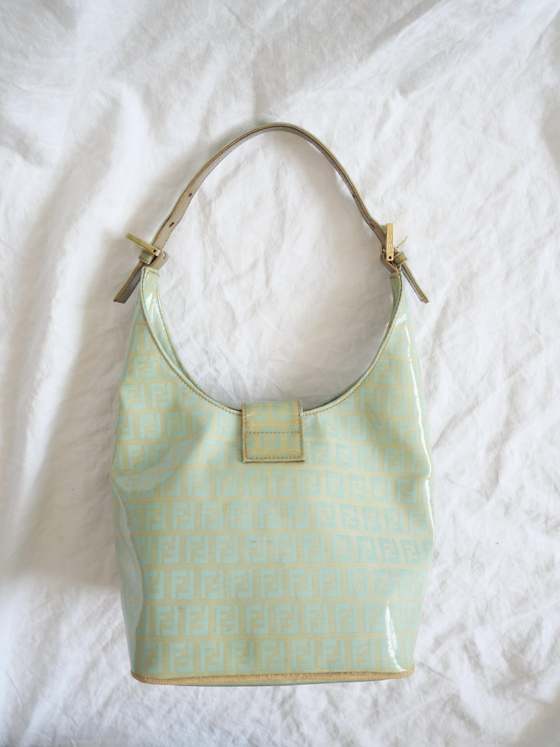 Eine traumhafte und sehr seltene Vintage Fendi Bucket Bag aus klassischem Fendi Canvas und lackiertem Stoff. Sie verfügt über einen großen Innenraum mit einer verschließbaren Innentasche. Sie befindet sich in Gutem Zustand mit beschrieben Tragespuren.