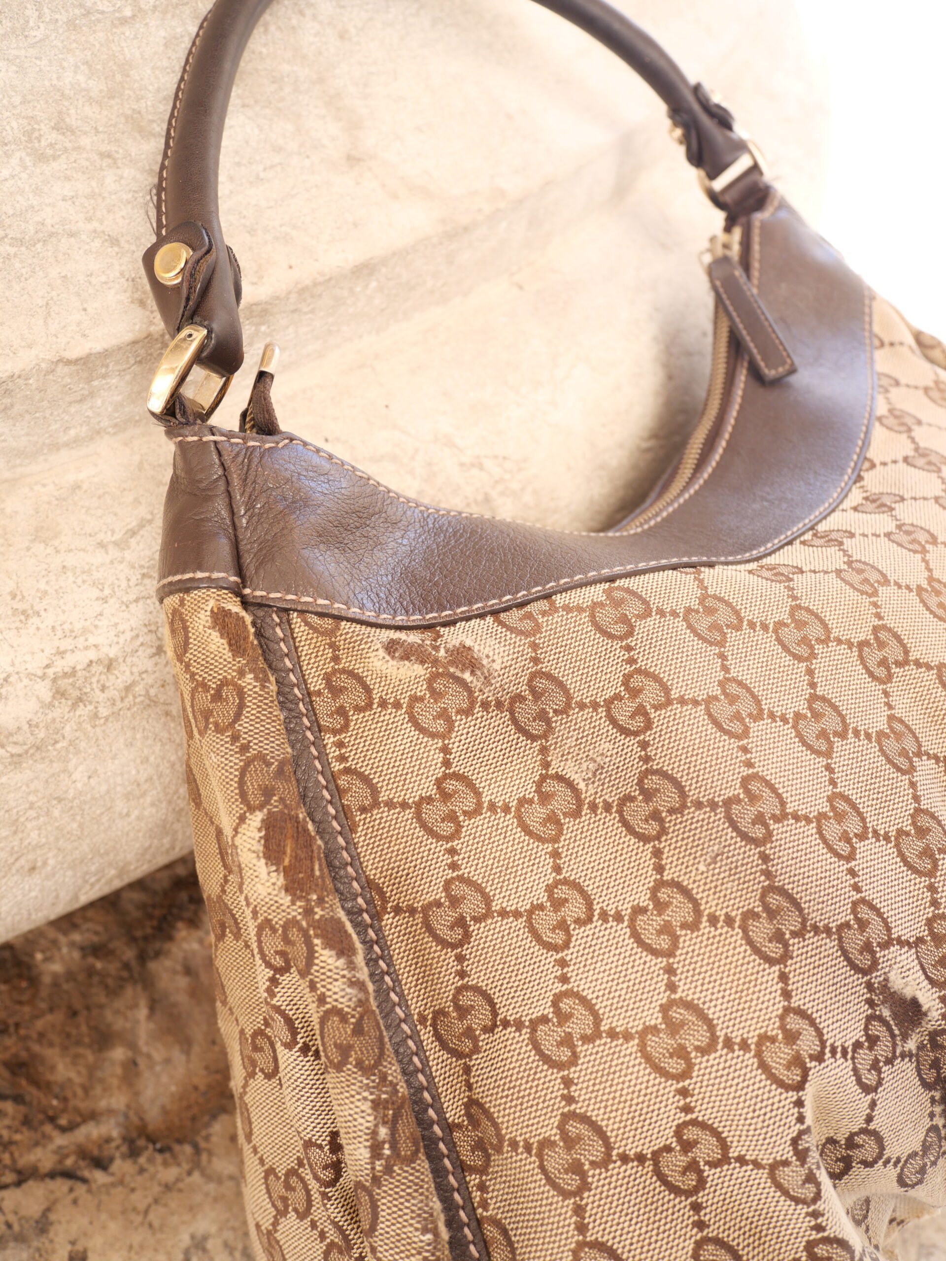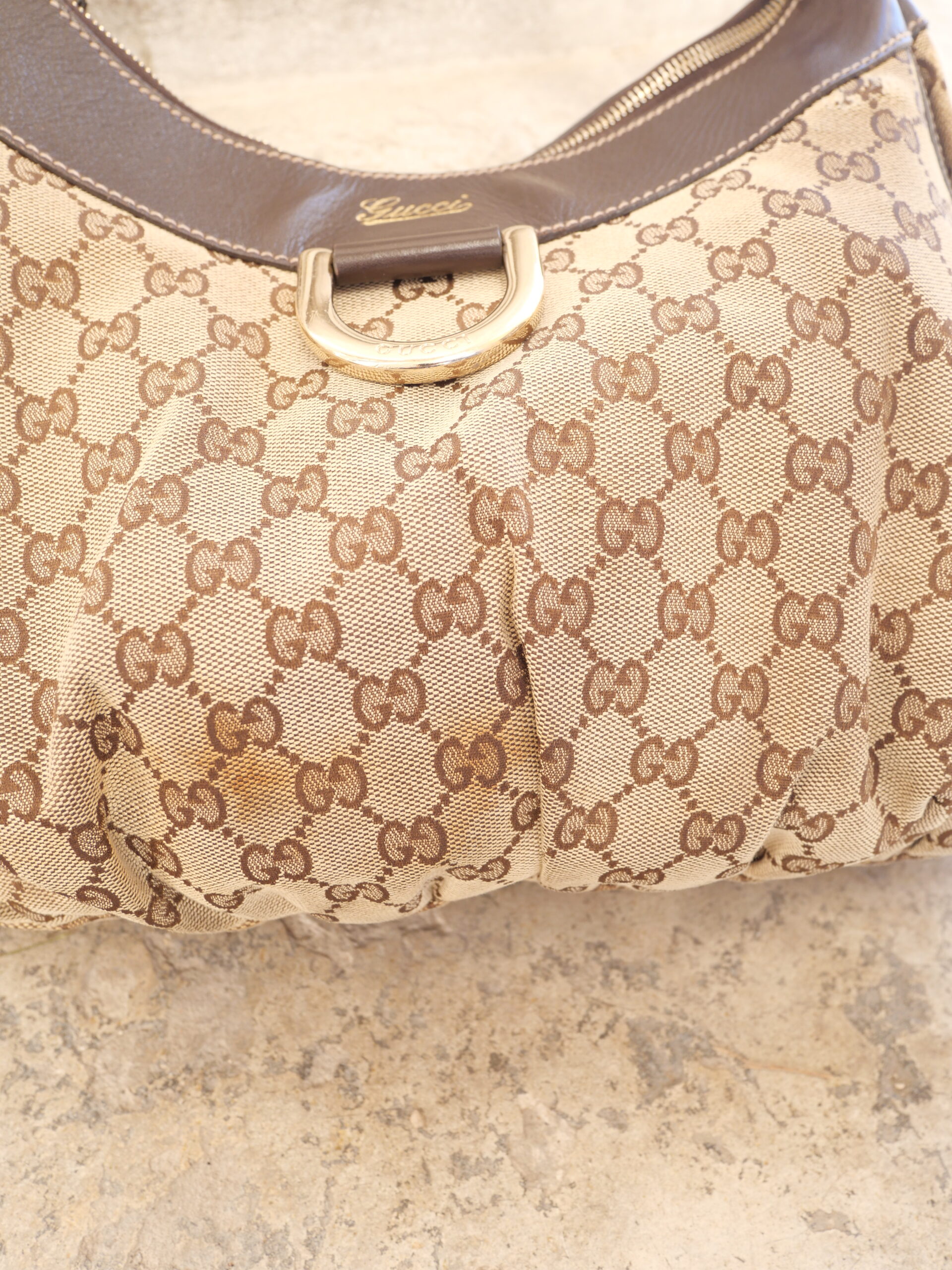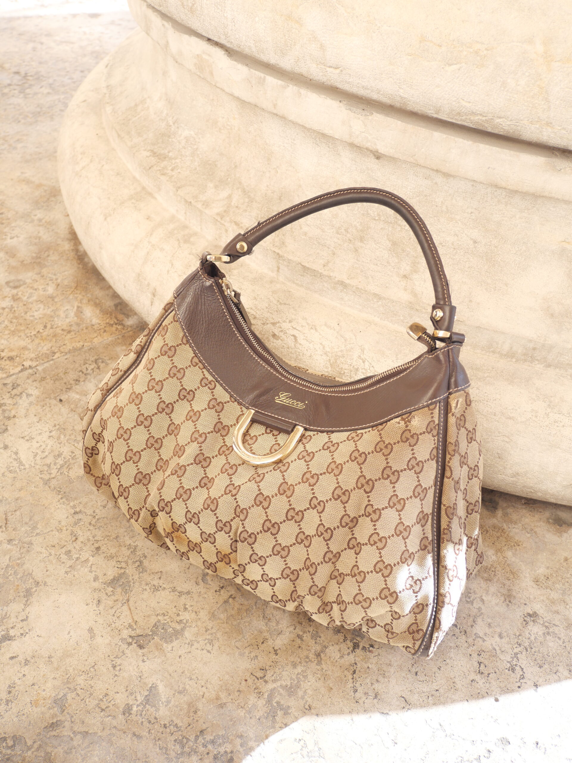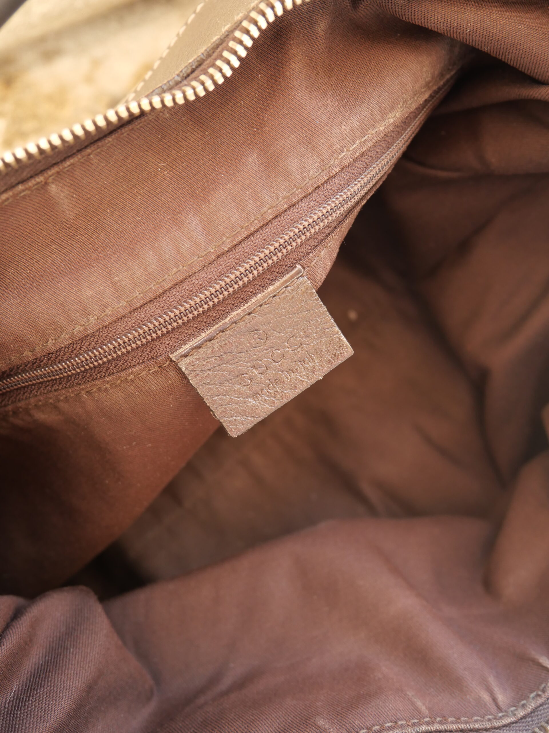 Diese Gucci Schultertasche ist der perfekte Begleiter für jeden Tag. Das Monogramm-Canvas und die braunen Lederdetails verleihen der Tasche einen einzigartigen Look, der sich wunderbar mit jedem Outfit kombinieren lässt. Die goldene Hardware sorgt für einen edlen Touch und macht die Tasche zu einem echten Hingucker. Sie ist super praktisch und bietet genug Platz für alle Essentials. Besonders in der großen Ausführung passt ein kleiner Laptop oder ein iPad hinein. Diese Tasche bringt einfach das gewisse Etwas mit. Ein tolles Stück, das man einfach haben möchte!