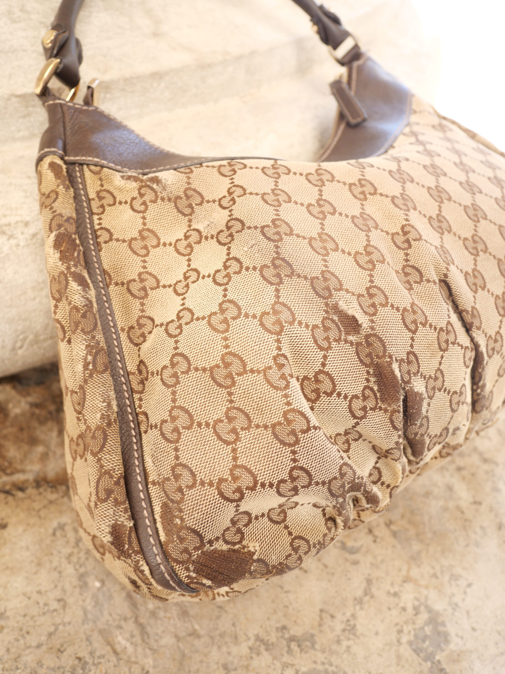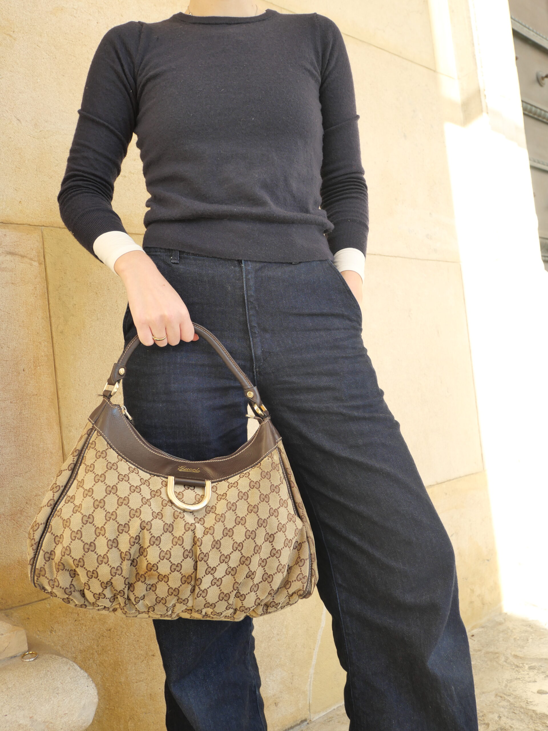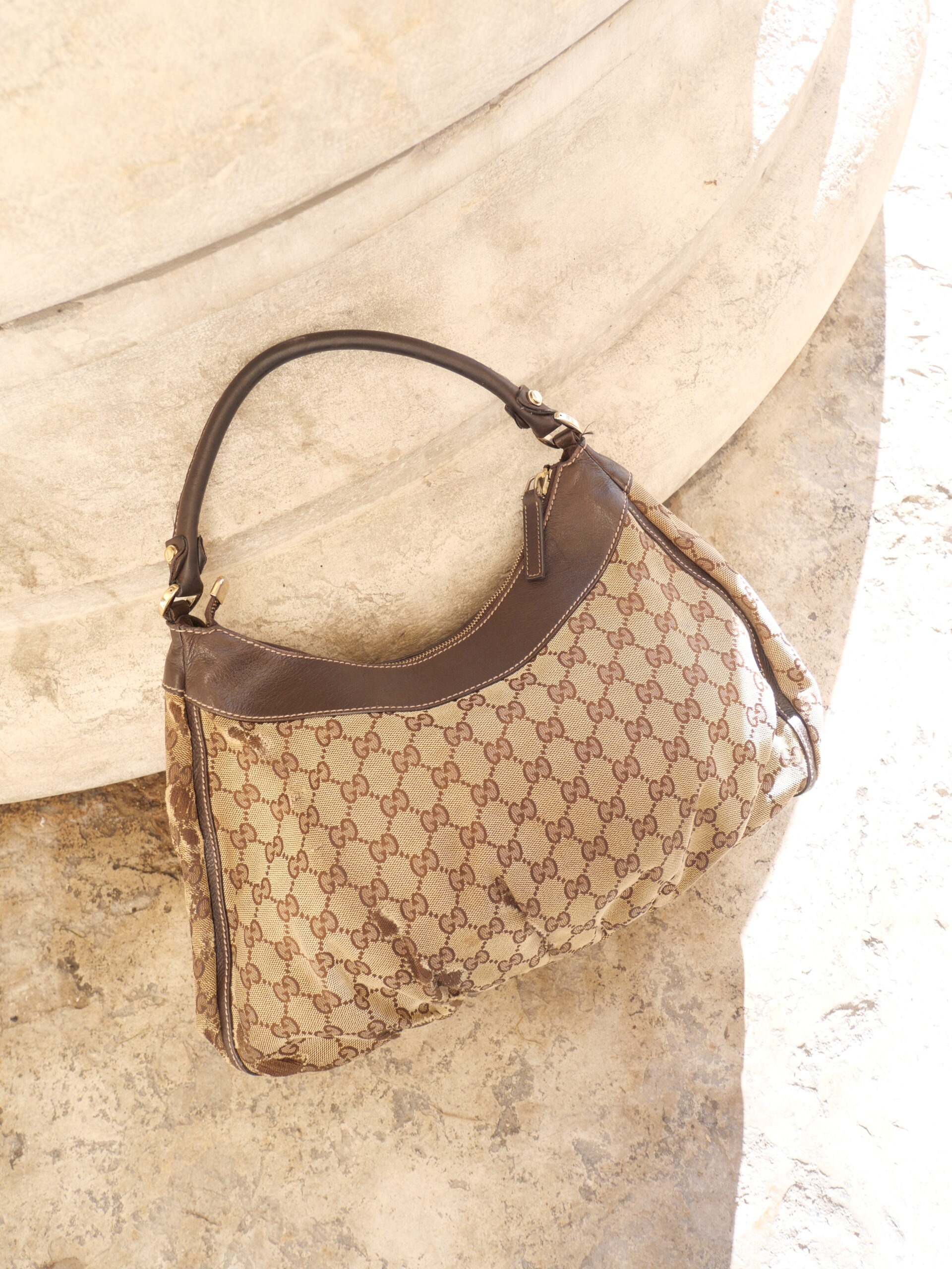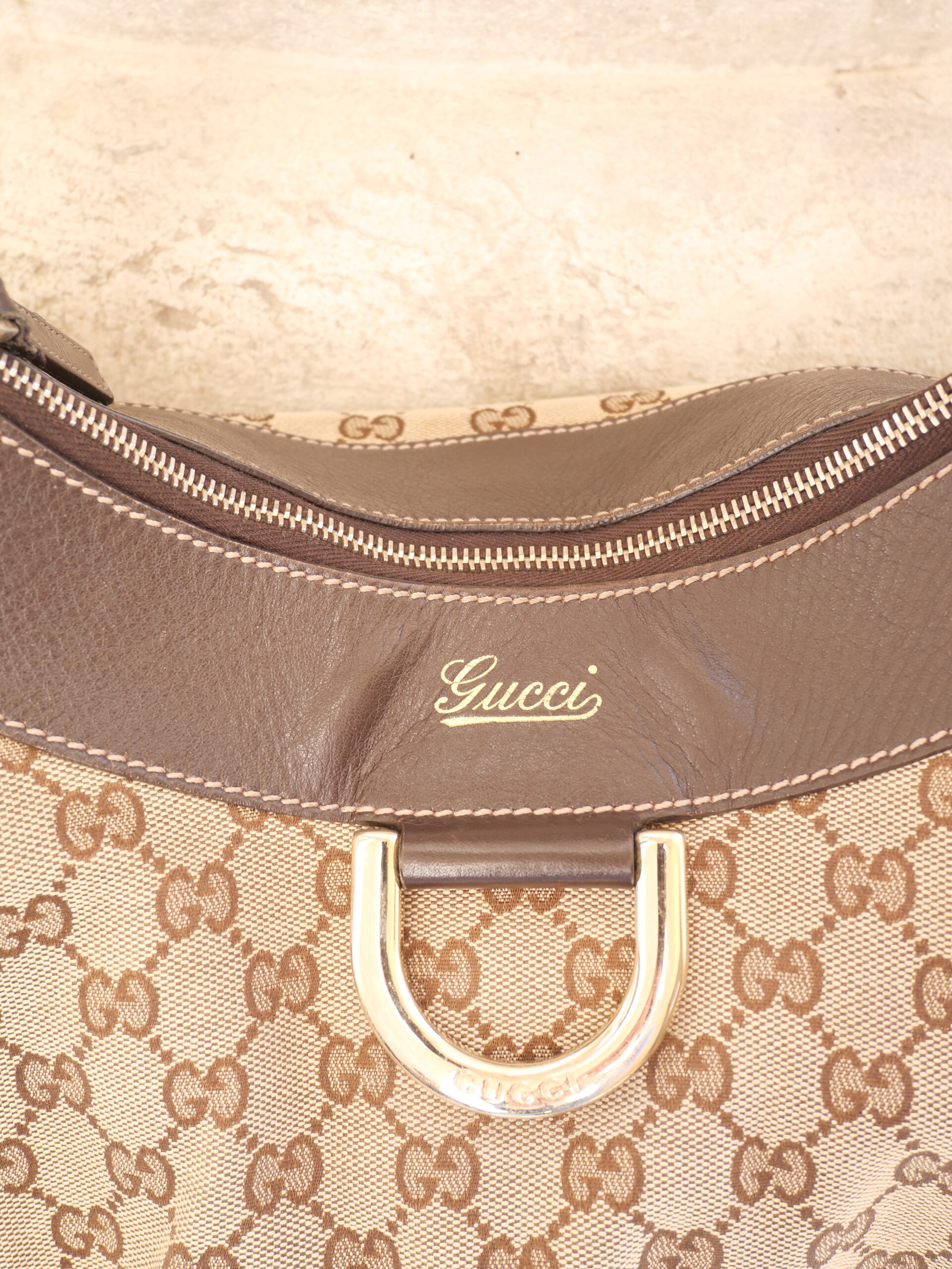 Diese Gucci Schultertasche ist der perfekte Begleiter für jeden Tag. Das Monogramm-Canvas und die braunen Lederdetails verleihen der Tasche einen einzigartigen Look, der sich wunderbar mit jedem Outfit kombinieren lässt. Die goldene Hardware sorgt für einen edlen Touch und macht die Tasche zu einem echten Hingucker. Sie ist super praktisch und bietet genug Platz für alle Essentials. Besonders in der großen Ausführung passt ein kleiner Laptop oder ein iPad hinein. Diese Tasche bringt einfach das gewisse Etwas mit. Ein tolles Stück, das man einfach haben möchte!