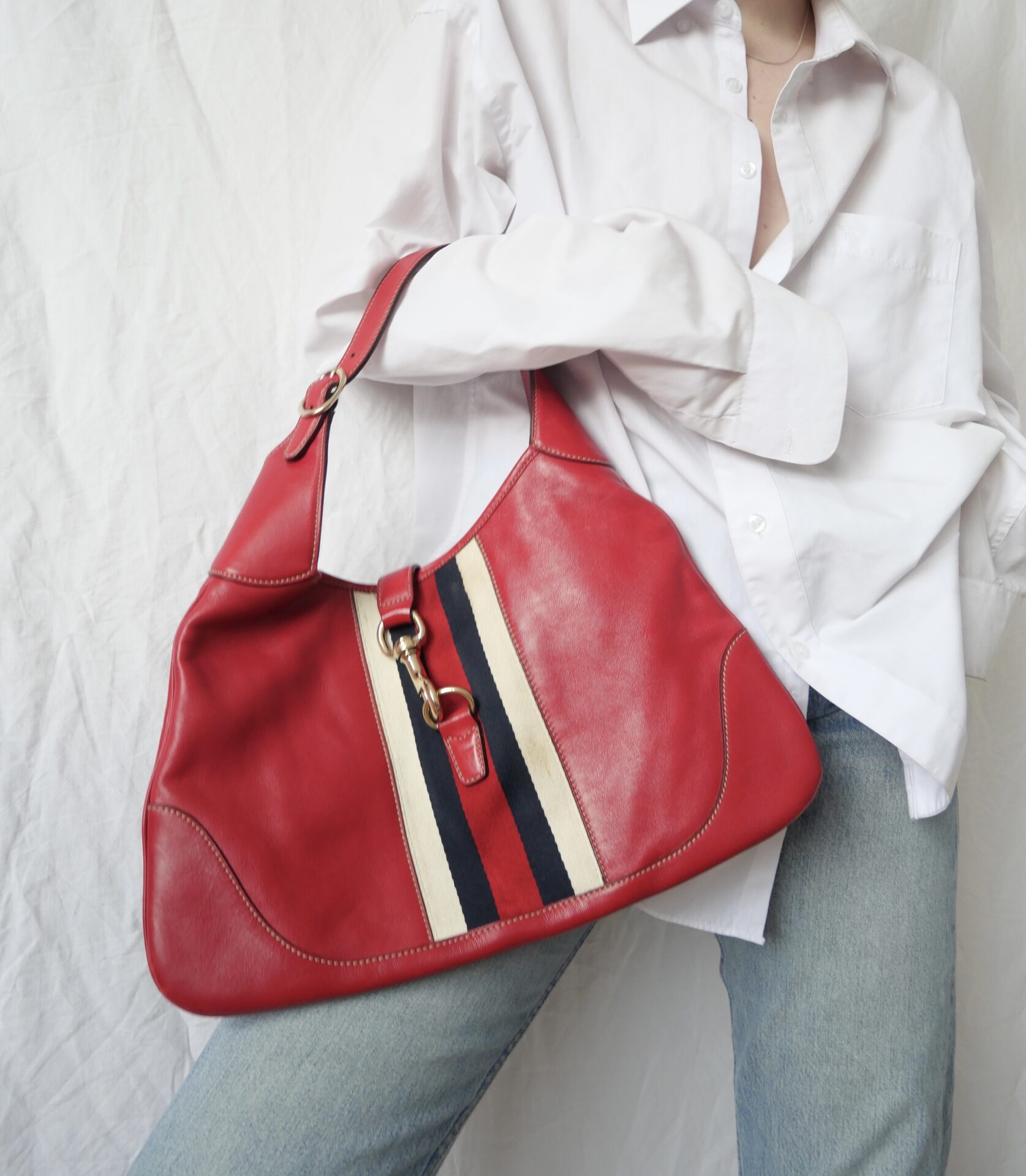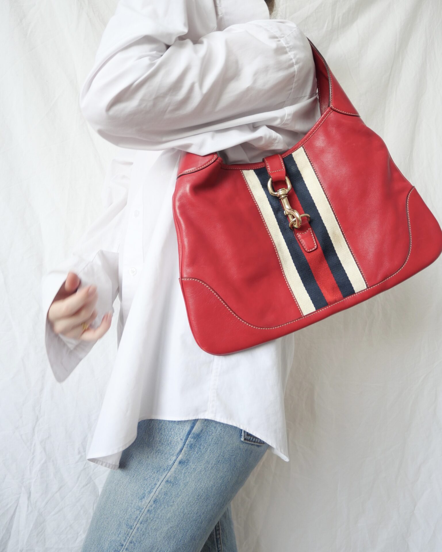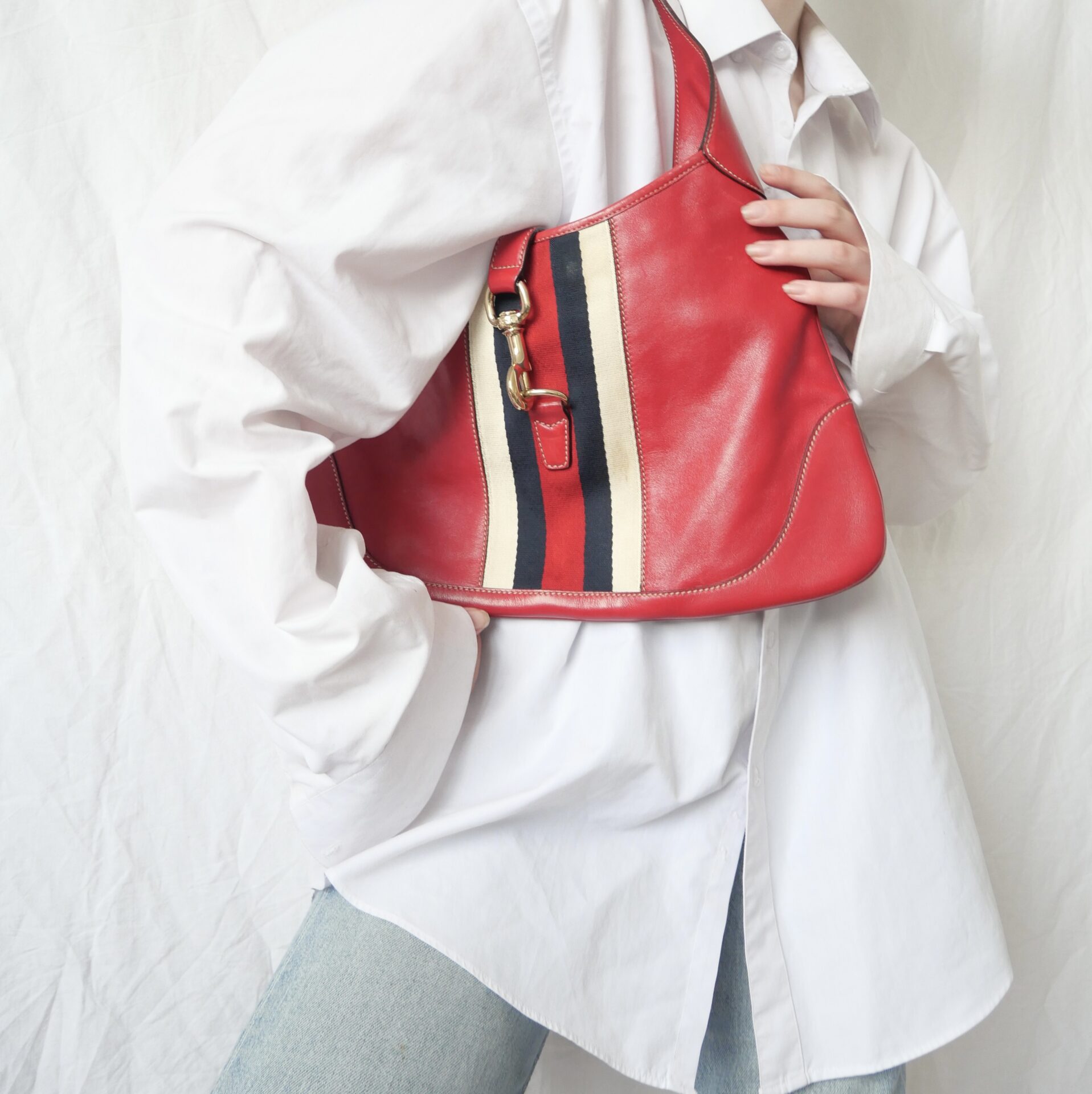 Ein Klassiker von Gucci und eine der Lieblingstaschen von Jackie Kennedy. Nicht nur ein echter Vintage Hingucker, sondern auch praktisch für den Alltag. Sie verfügt über ein großes Fach und ein kleines an der Seite eingenähtes Fach, das mit einem Reißverschluss geschlossen wird. Ein sehr seltenes und vor allem besonderes Modell der Jackie.
