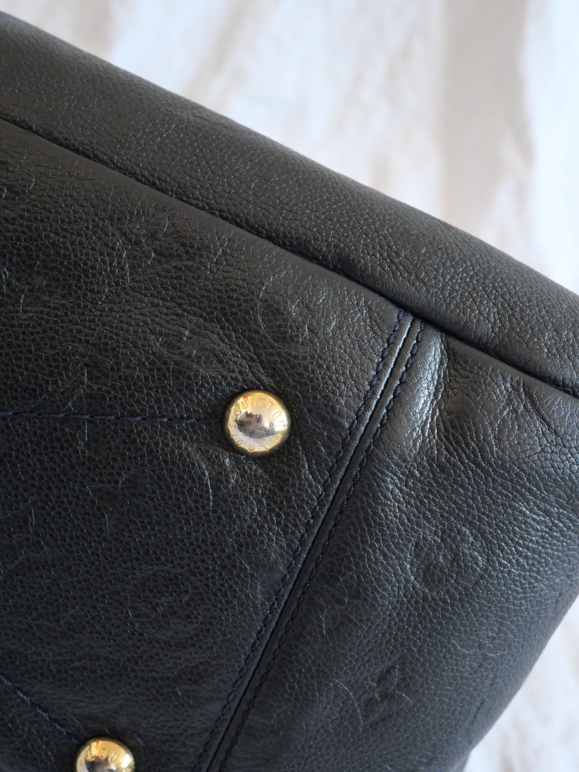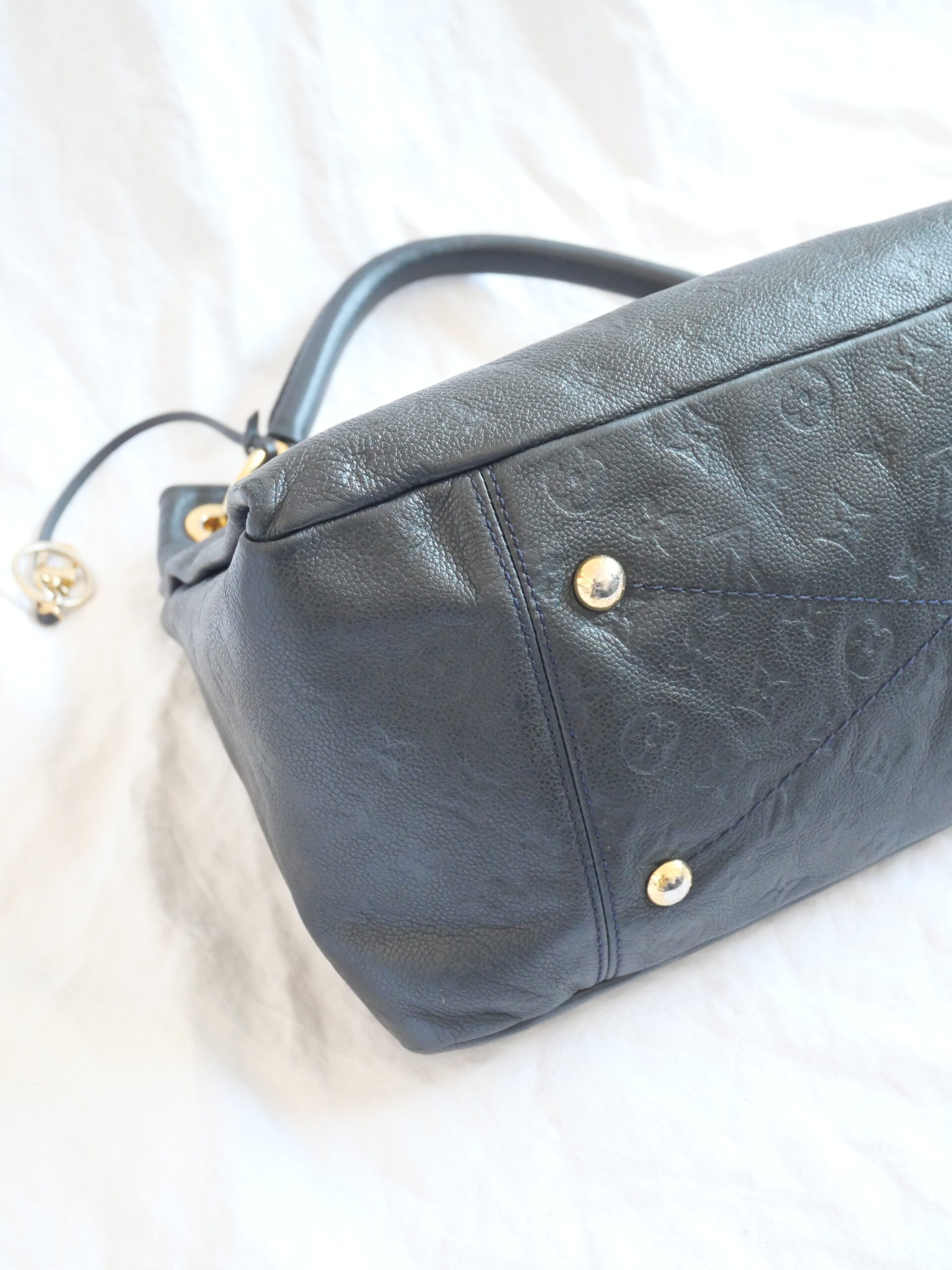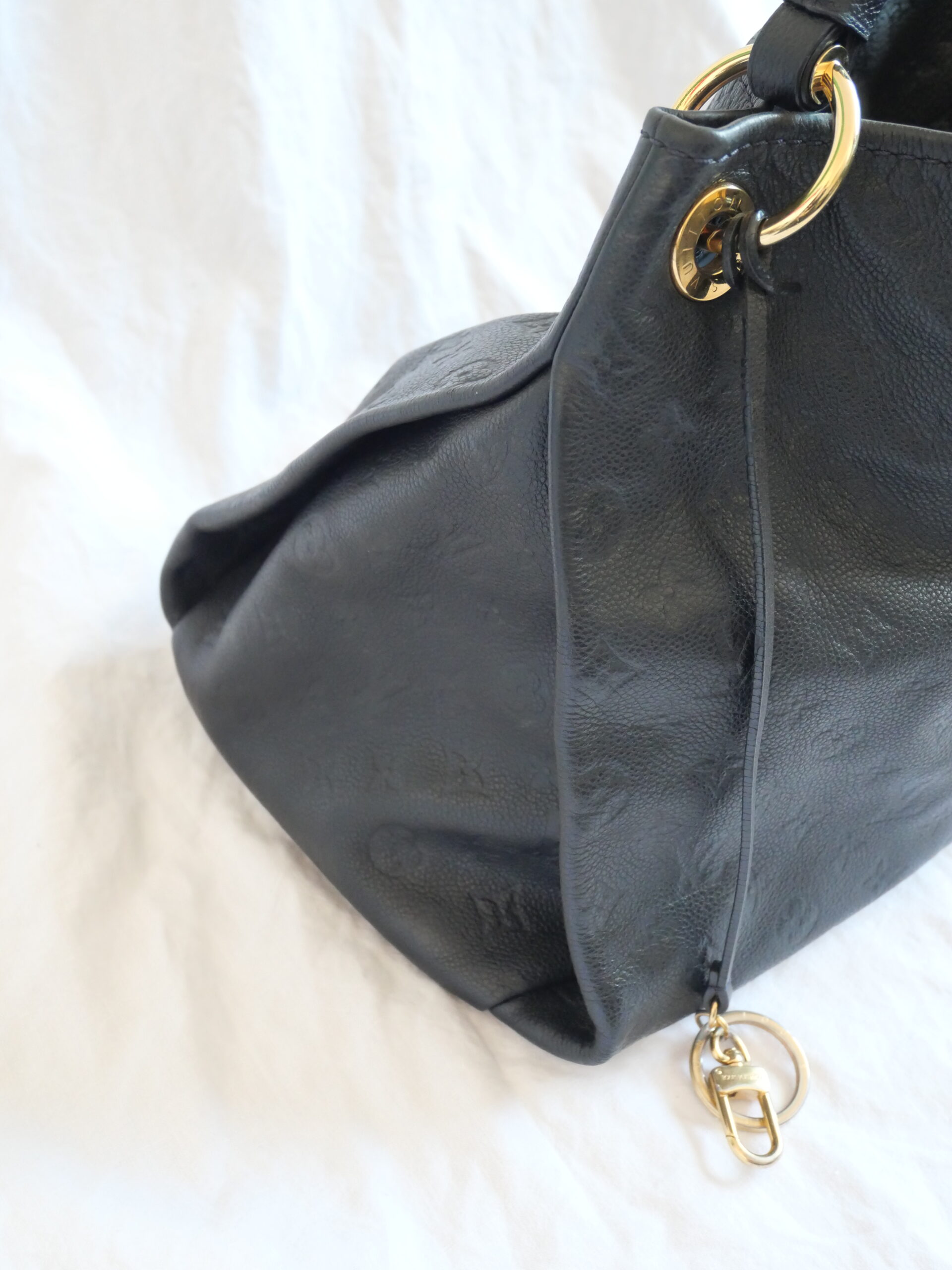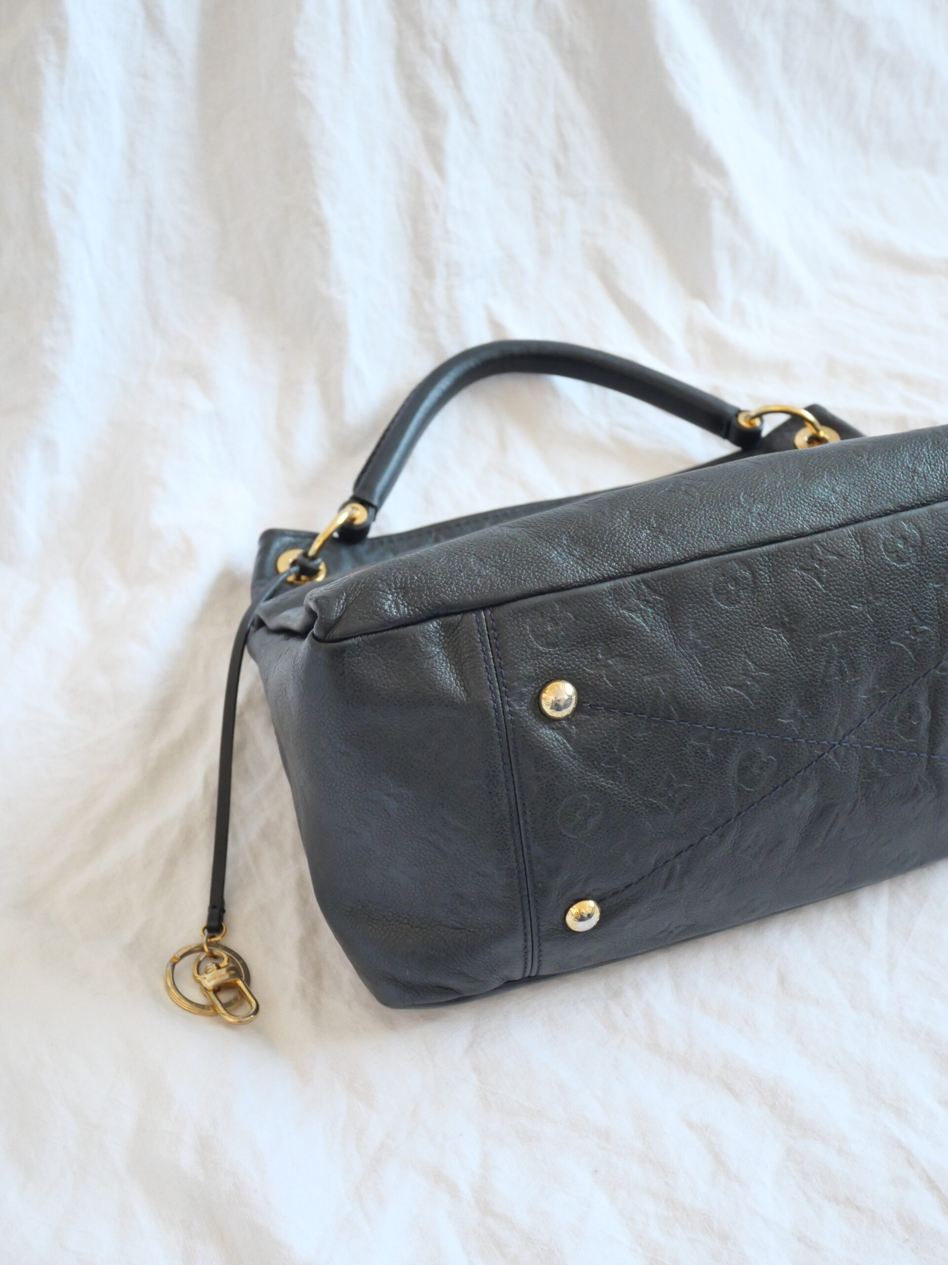 Die Louis Vuitton Artsy ist eine der begehrtesten Taschen des Designers. Sie verfügt über einen geräumigen Innenraum mit mehreren Innenfächern. Durch Ihren abgerundeten Ledergriff lässt sie sich bequem über die Schulter oder in der Hand tragen. Die Farbe Infini Blau ist ein sehr dunkel strahlendes blau. Die Artsy befindet sich in hervorragendem Zustand und kommt mit Staubbeutel.