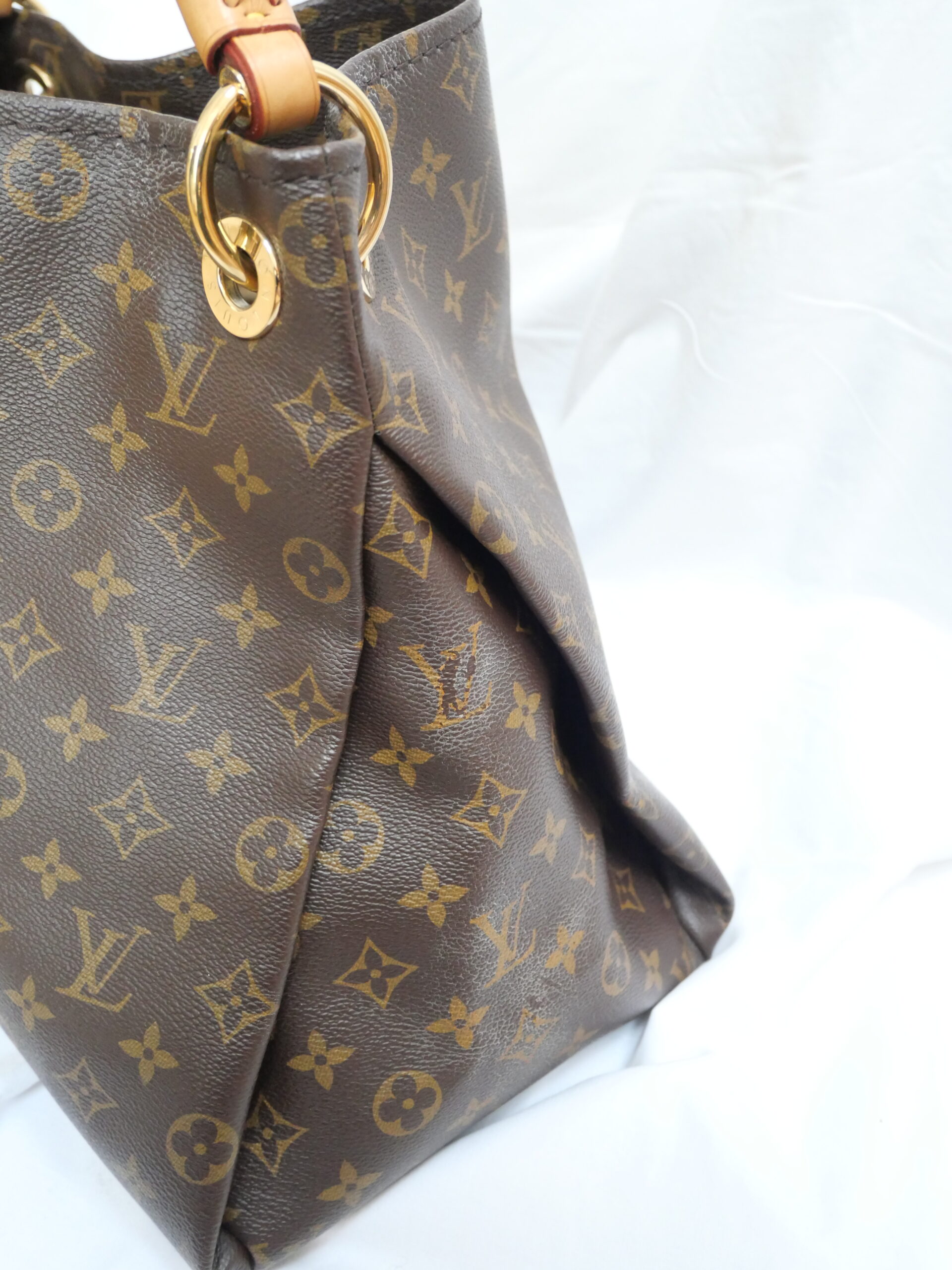 Die Louis Vuitton Artsy im klassischen Monogramm Canvas ist eine hervorragende Tasche für den Alltag und eine praktische Alternative zur Neverfull. Sie verfügt über einen breiten, mit Leder verzierten Schulterriemen und viel Raum im Inneren. Geliefert wird sie mit dem Originalen Louis Vuitton Staubbeutel und Karton.