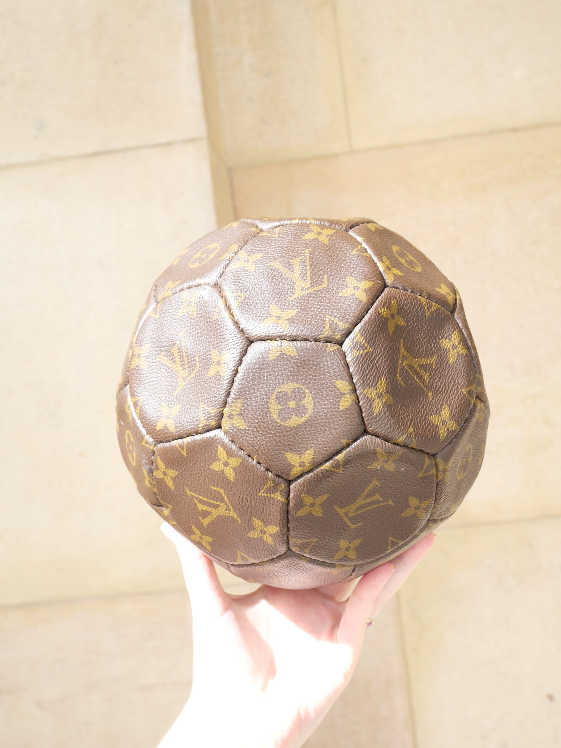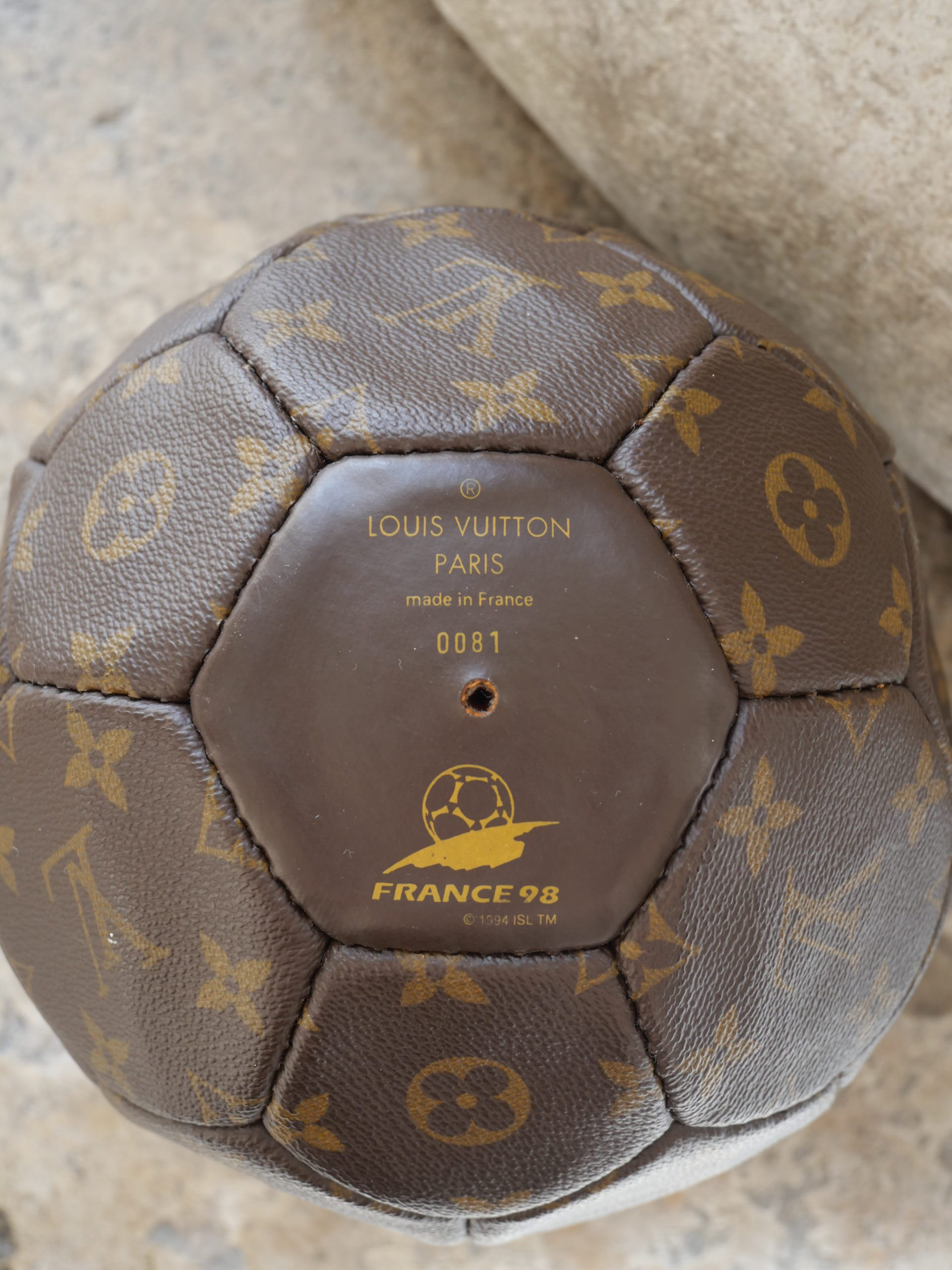 Der Fußball von Louis Vuitton entstand 98 durch die Weltmeisterschaft in Frankreich, die dann auch durch das Gastgeber Land gewonnen wurde. Als ehren stellte der französische Designer eine liierte Anzahl an ikonischen Fußbällen her. gefertigt ist er aus dem klassischen Monogramm Canvas. Er lässt sich wie ein gewöhnlicher Fußball aufblasen und auf Wunsch auch mit spielen. Er kommt mit einem praktischen Tragenetz, dass aus Leder gefertigt ist, indem France 98 eingraviert ist. Auf der Unterseite des Balls ist das Logo der damaligen Weltmeisterschaft, die Nummer sowie Louis Vuitton zu sehen.