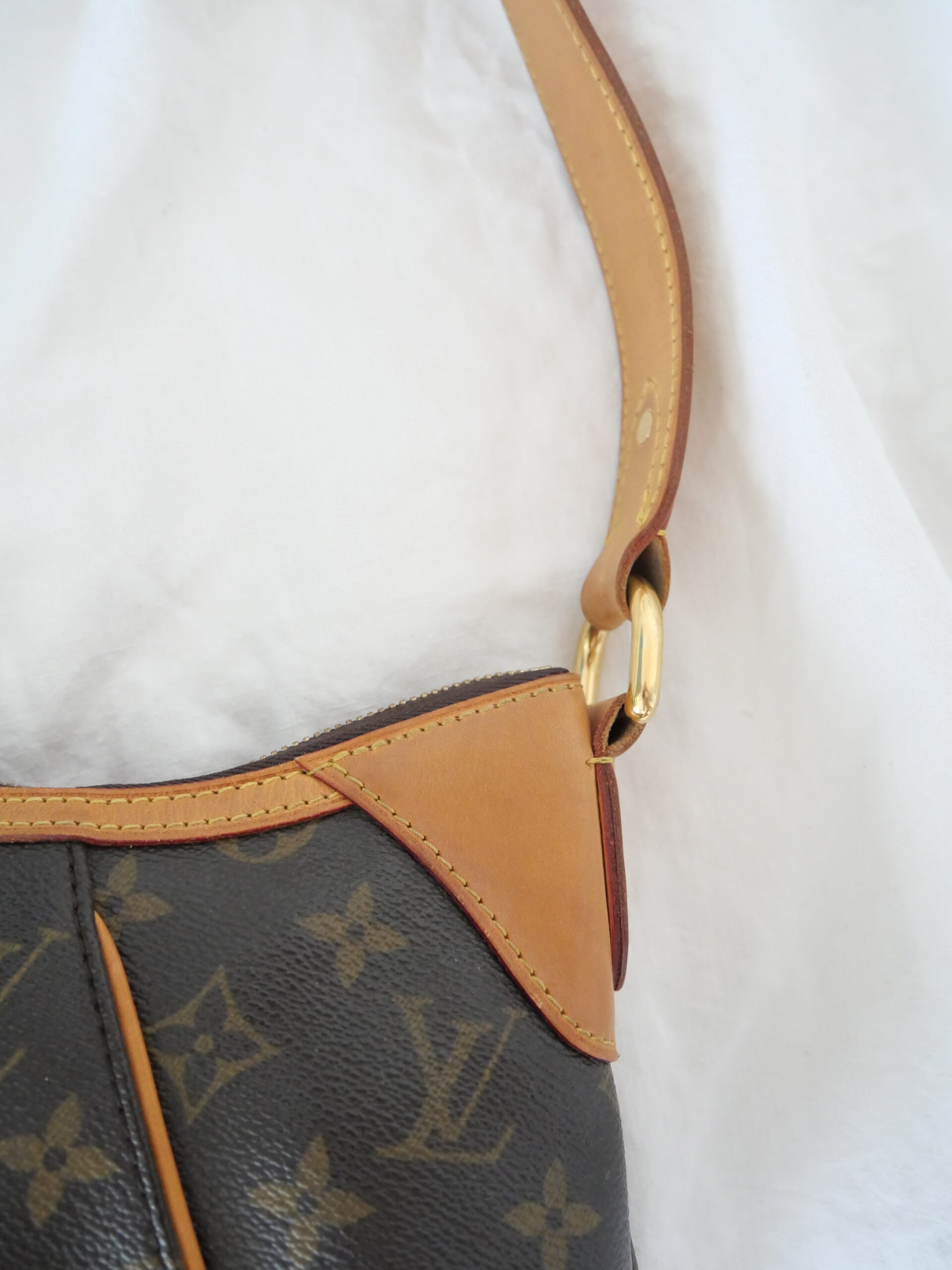 Die Thames ist eine traumhafte Schultertasche von Louis Vuitton im klassischen Monogramm Canvas. Besonders sticht sie durch ihre goldene Hardware auf der Vorderseite hervor. Die Tasche befindet sich in hervorragendem Zustand und ist der ideale Begleiter für den Alltag.