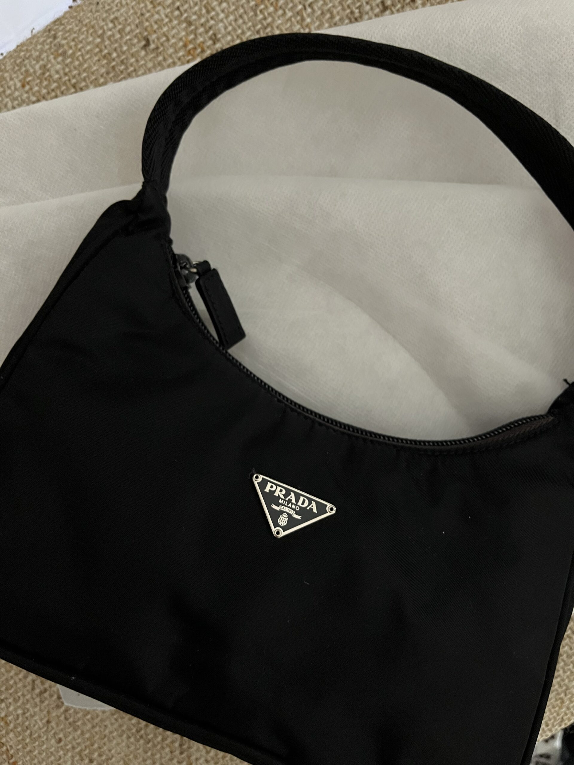 Die Originale Prada Nylon Schultertasche, die in den letzten Jahren ihr großes Comeback gefeiert hat. Die Tasche ist der perfekte Begleiter für den Alltag: Handy, Geldbörse, Schlüssel und Vieles mehr passen problemlos hinein. Durch das Material ist sie sehr pflegeleicht.